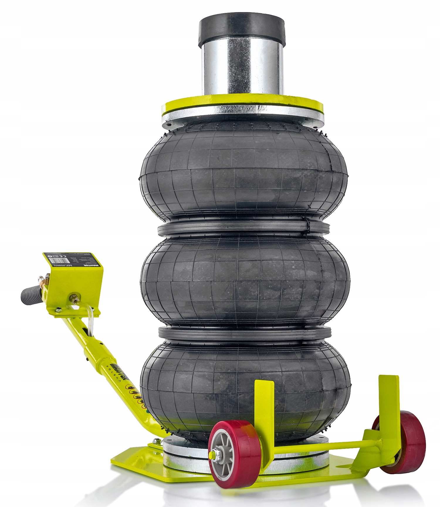 Два колеса и изогнутая ручка позволяют легко и быстро транспортировать подъемник. Подъемная подушка изготовлена из армированной резины.