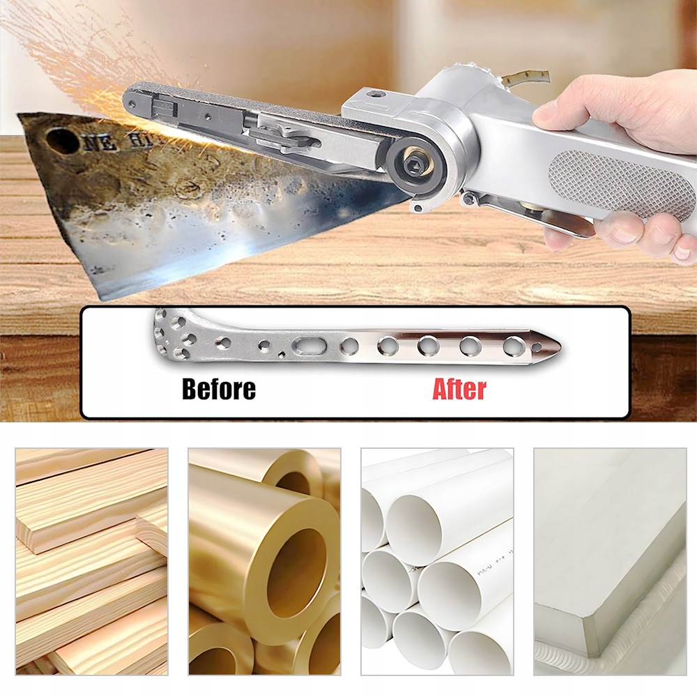 - Универсальность: различные типы абразивных лент, включенные в набор, позволяют соответствовать инструменту с различными материалами и типами обработки. Сделает шлифовальную машину более безопасной в использовании по сравнению с электрическими инструментами, особенно в средах с повышенным риском пожара или взрыва.