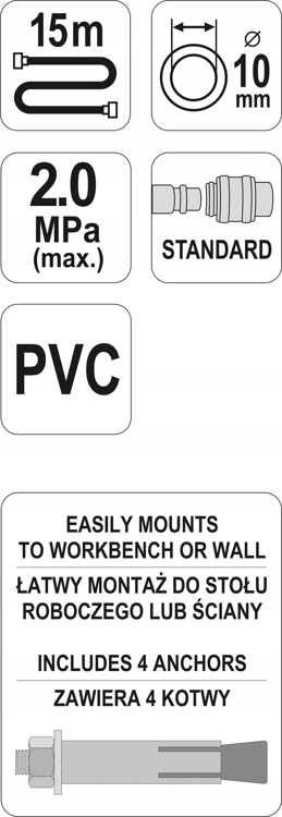 Пневматический кабель на ленте, длина 15m - Длина соединения 60 см . Возможность установить на стене или пол. Шланг шланг со стандартными быстрыми муфтами.