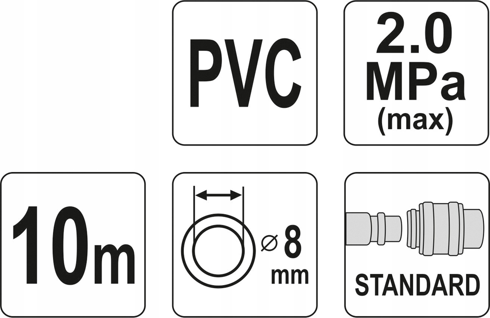 АРМИРОВАННЫЙ ПНЕВМАТИЧЕСКИЙ ШЛАНГ ПВХ 8 мм x 10 м С БЫСТРОРАЗЪЕМНЫМИ СОЕДИНЕНИЯМИ