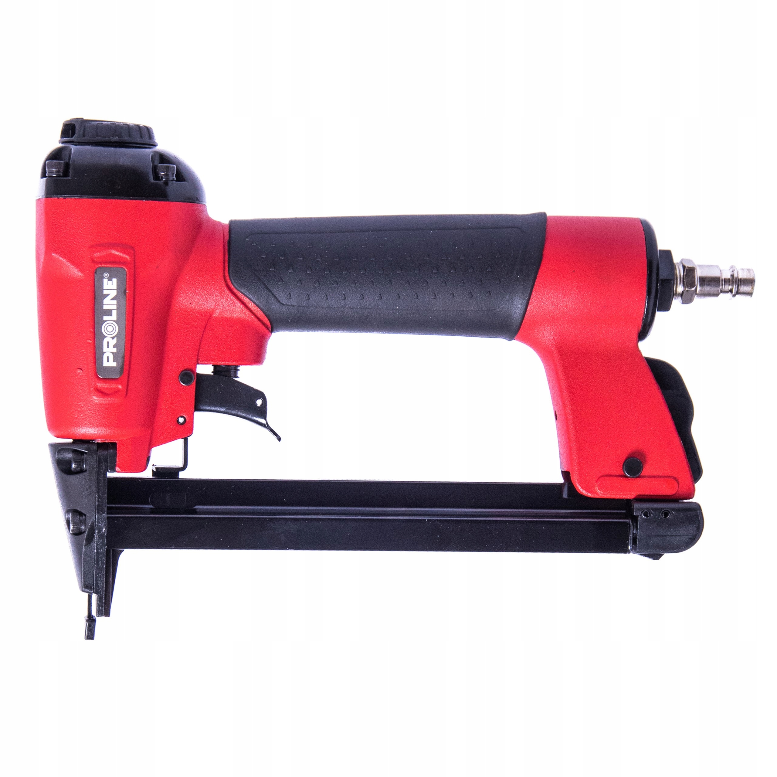 Степлер PROLINE — надежный и очень прочный пневматический инструмент, предназначенный для тяжелых работ. Устройство предназначено для монтажных и отделочных работ, где есть необходимость быстро и надолго скрепить различные виды материалов. Его можно использовать в обивочных, столярных и домашних мастерских. Комфорт при работе обеспечивается эргономичной нескользящей ручкой, небольшим весом и вместительным магазином с возможностью быстрой загрузки скоб. Степлер оснащен предохранителем, защищающим от случайного применения скоб. В комплект также входит пневматическое масло, сервисный ключ и быстросъемная заглушка (тип 26).