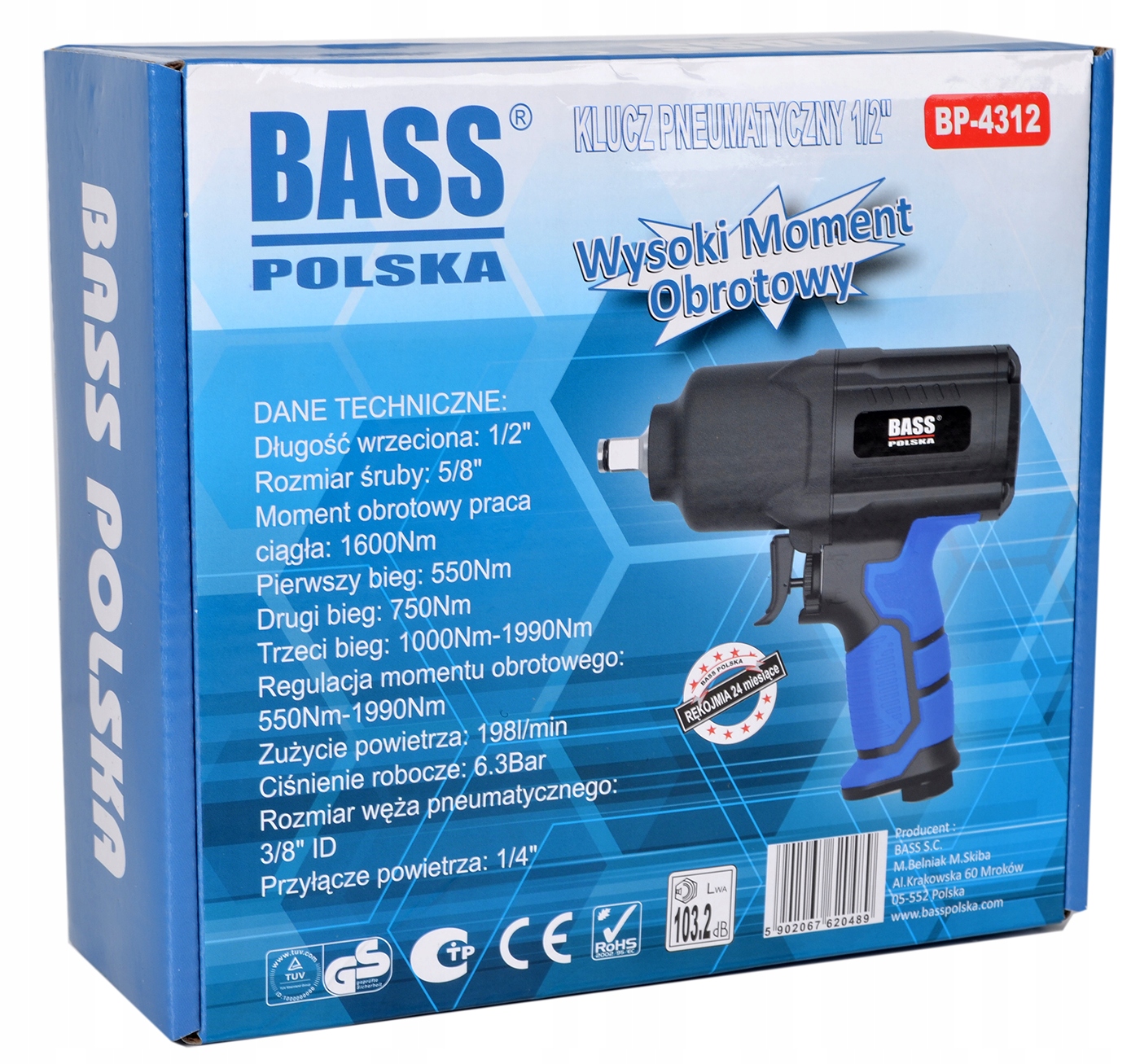 Пневматический ударный ключ бас -бас polska 1/2 1990nm Strong | Не батарея