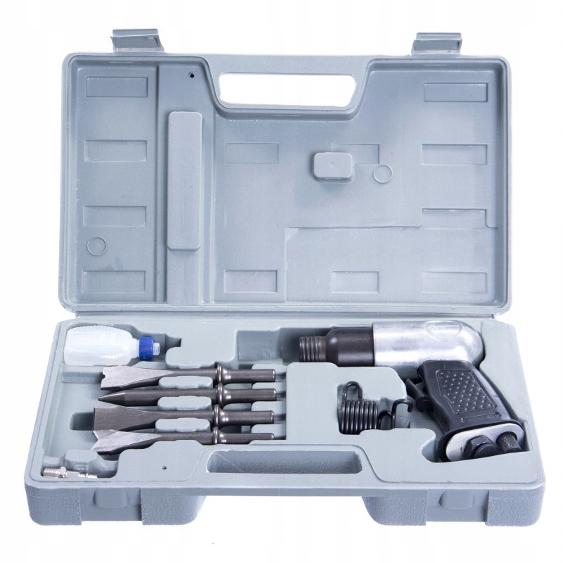 Пневматический режущий молоток с набором насадок MAGNUM. Молоток предназначен для листового металла, монтажных и ремонтных работ. и т. д. Четыре долота позволяют легко адаптировать его под свои нужды. потребности. Хвостовики долота имеют круглый тип крепления.