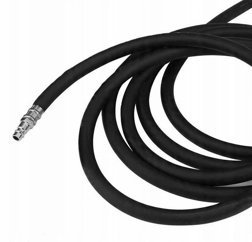 Он не спиральный, что позволяет его легко сворачивать и хранить, напр. на барабане. Дополнительно оснащен быстроразъемами Euro, что позволяет сразу подключать его к пневмосистеме.
