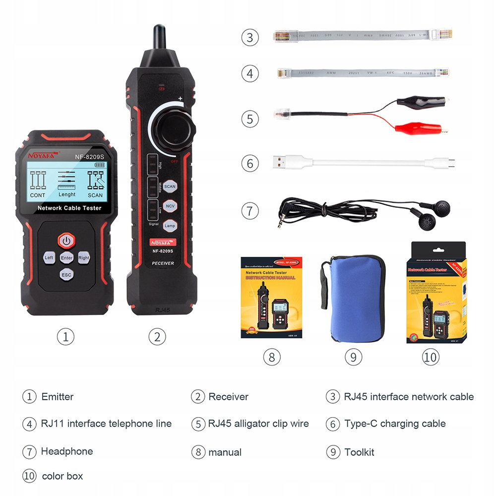 NF-8209S-это новое поколение, предлагающее цифровую и аналоговую сигнализацию в одном сетевом тонере и зонде. Он имеет три режима отслеживания кабелей, такие как цифровой режим, аналоговый режим и режим POE. Это означает, что он оснащен самыми мощными технологиями местоположения кабеля в каждой рабочей среде. Он также включает в себя измерение длины кабеля, тестирование разломов кабеля, тестирование POE, мигание концентратора и функцию NCV, что делает его неотъемлемым инструментом для инженеров -проводков