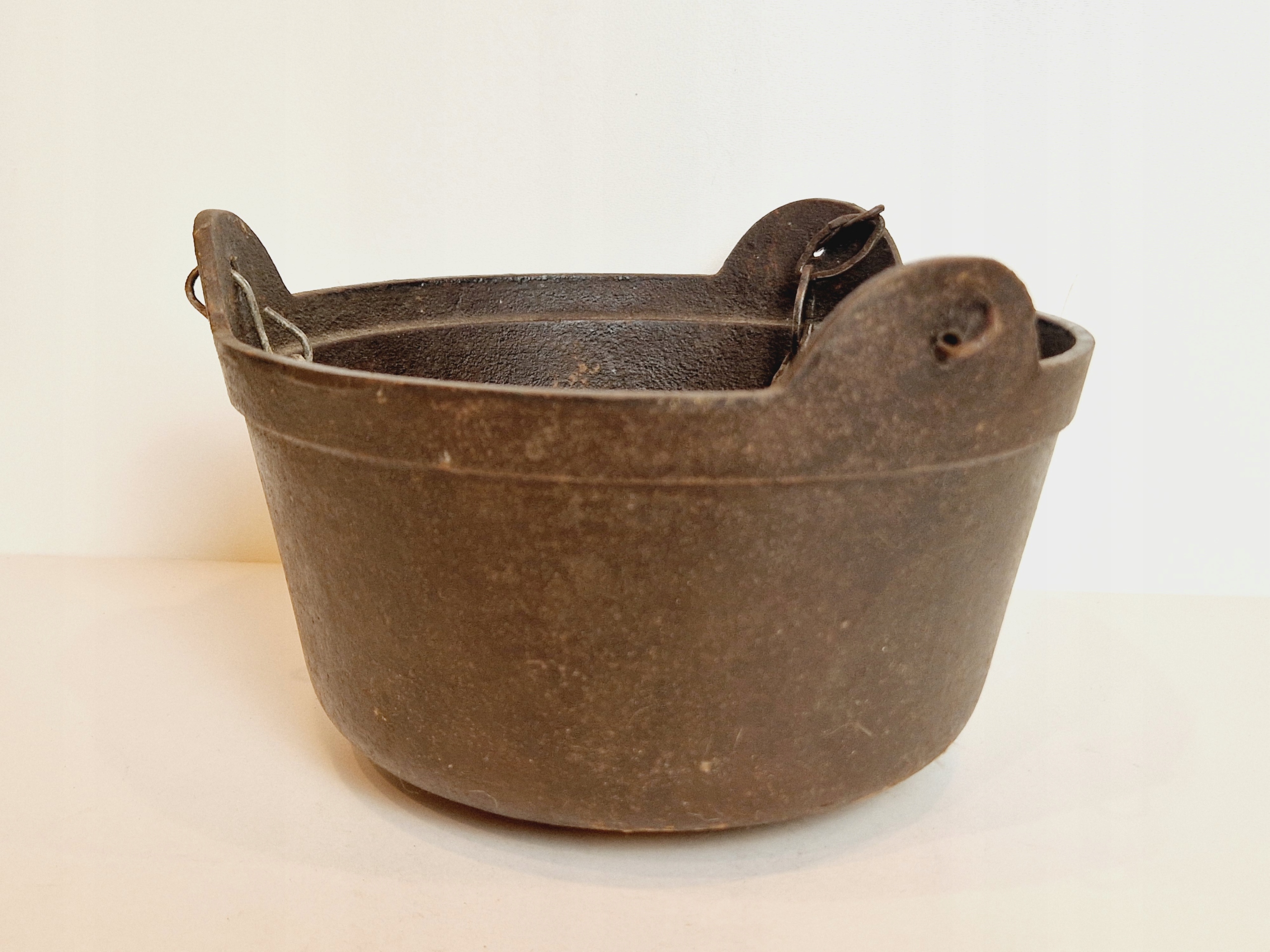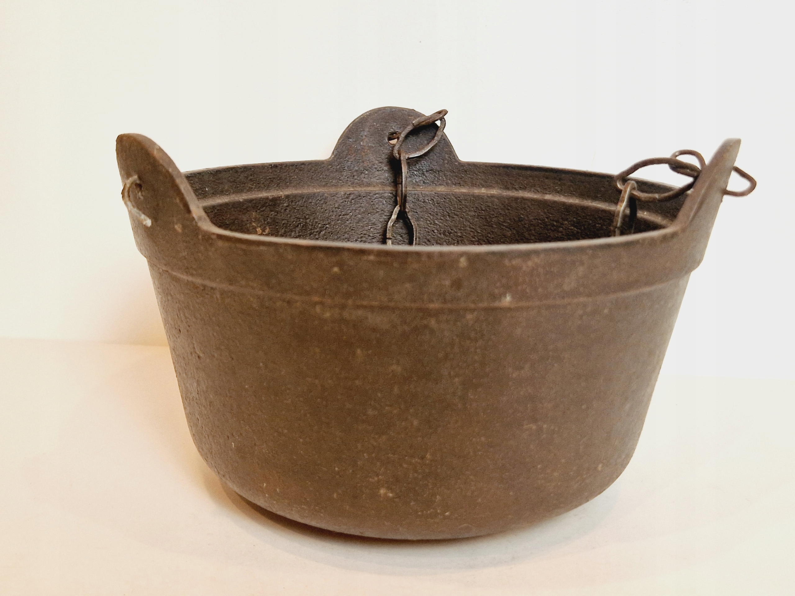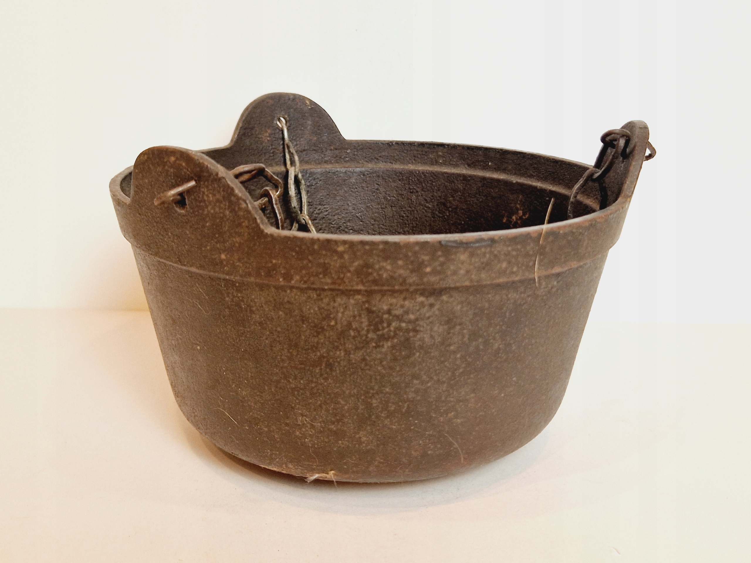poł. XXw / STARY MASYWNY (2,25 kg) WISZĄCY ŻELIWNY GARNEK - KOCIOŁEK /654