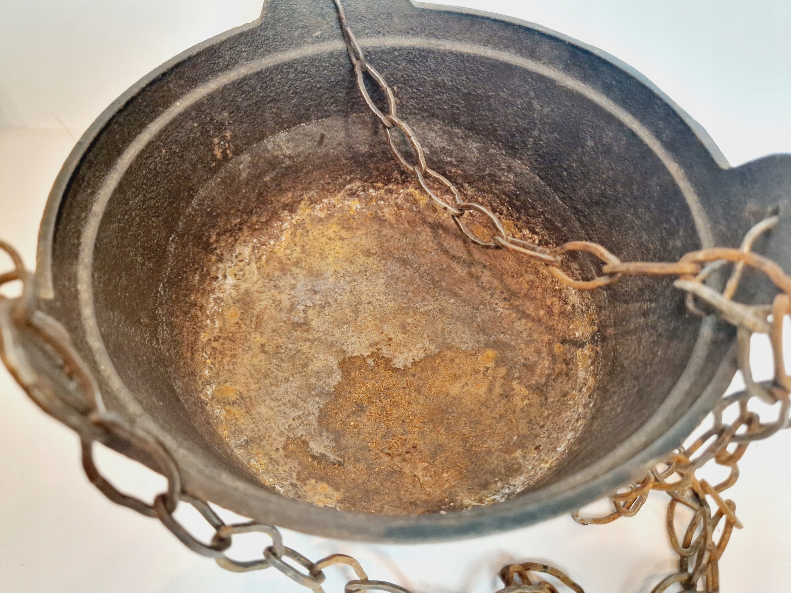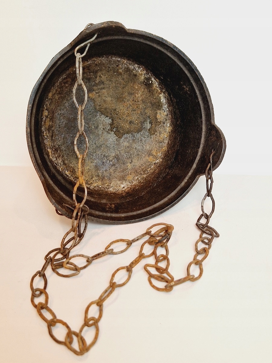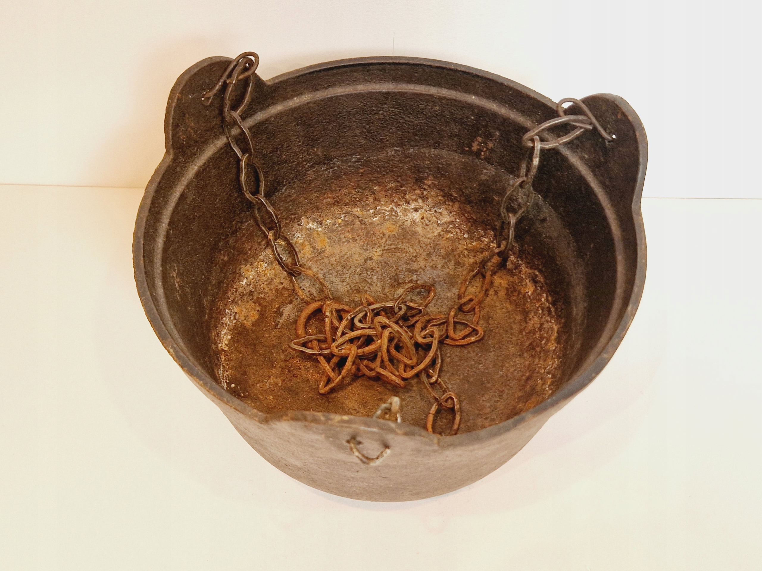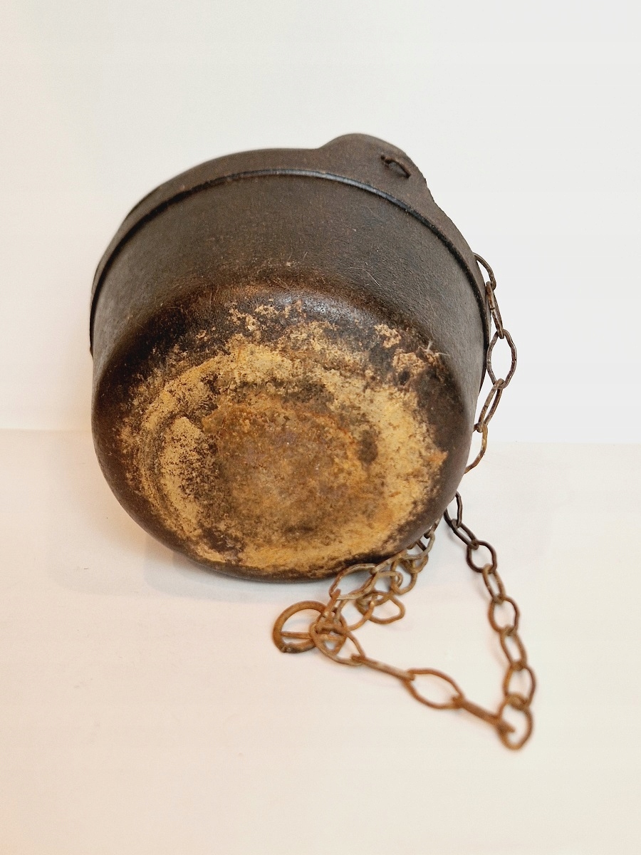 poł. XXw / STARY MASYWNY (2,25 kg) WISZĄCY ŻELIWNY GARNEK - KOCIOŁEK /654