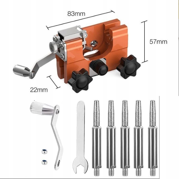 Тоталя цепной пилы имеет 2 отверстия и доставляется с 5 заменяемыми точильниками, подходящие для различных аксессуаров для пил из электрических цепей