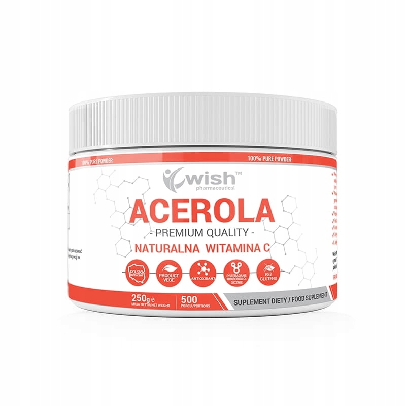 acerola forte 500 мг Wish Pharmaceutical® - это пищевая добавка, обеспечиваемая до 125 мг натурального витамина C.