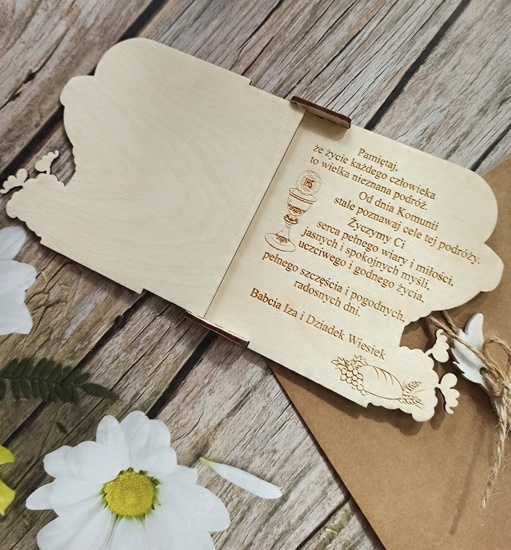 ДВОЙНАЯ КАРТА НА 1-Е СВЯТОЕ ПРИЧАСТИЕ, ДЕРЕВЯННЫЕ ПОЖЕЛАНИЯ + БЕСПЛАТНО
