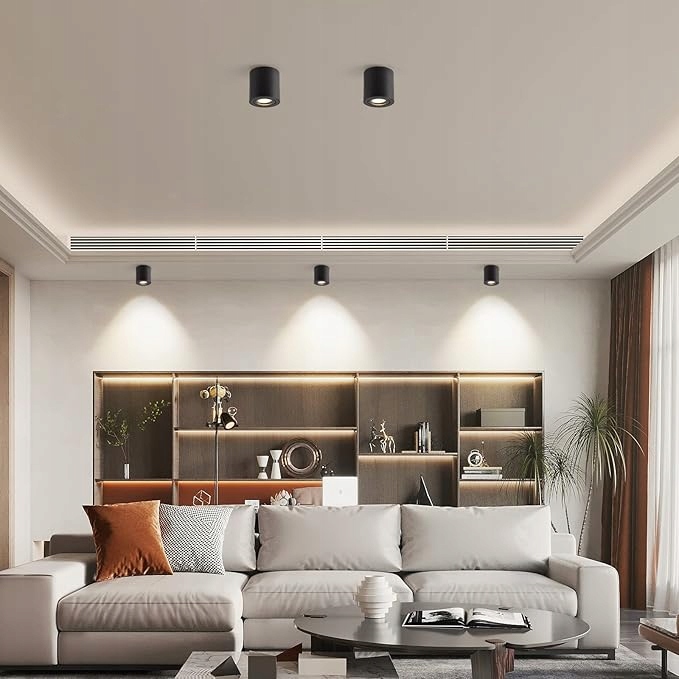 Угол комнаты. Монтированная сборка является идеальной заменой для встроенных ламп и встроенных фар, компактная и круглая конструкция делает эту потолочную лампу идеальным освещением для коридора, гостиной или торгового центра.