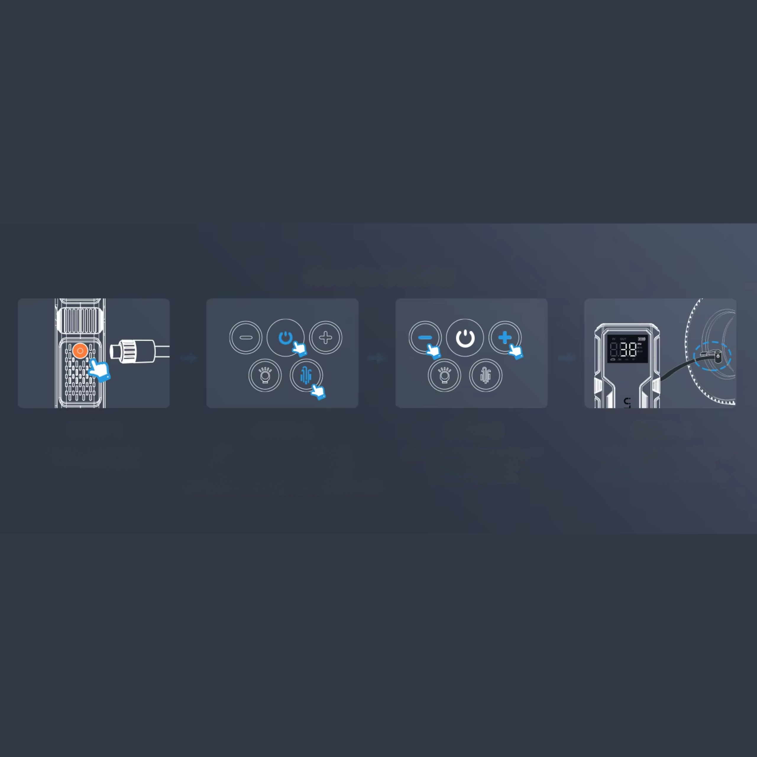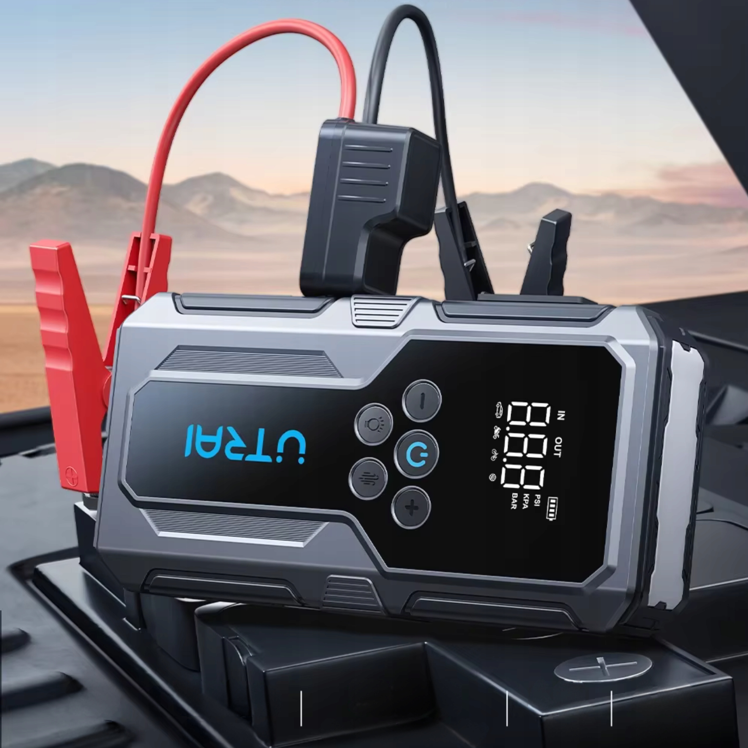 Устройство имеет встроенный компрессор воздуха, благодаря которого мы можем раздувать автомобиль, велосипед, мотоциклетные шины, матрасы, шарики, в любом месте и время.