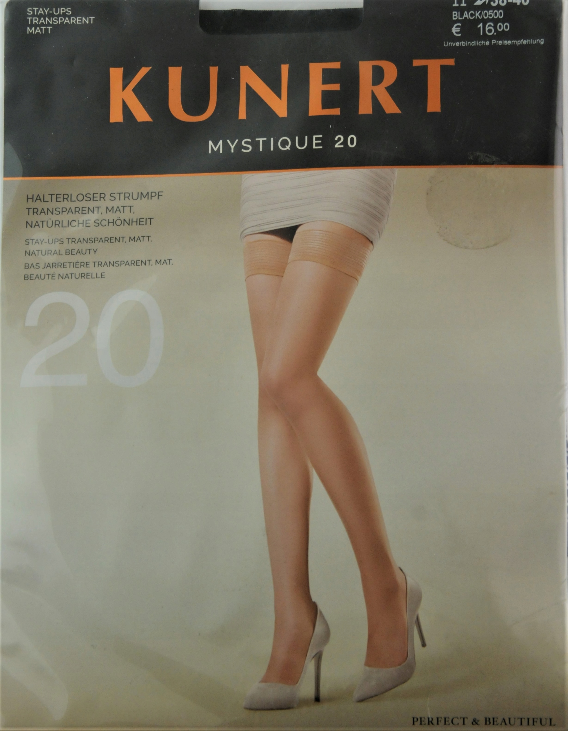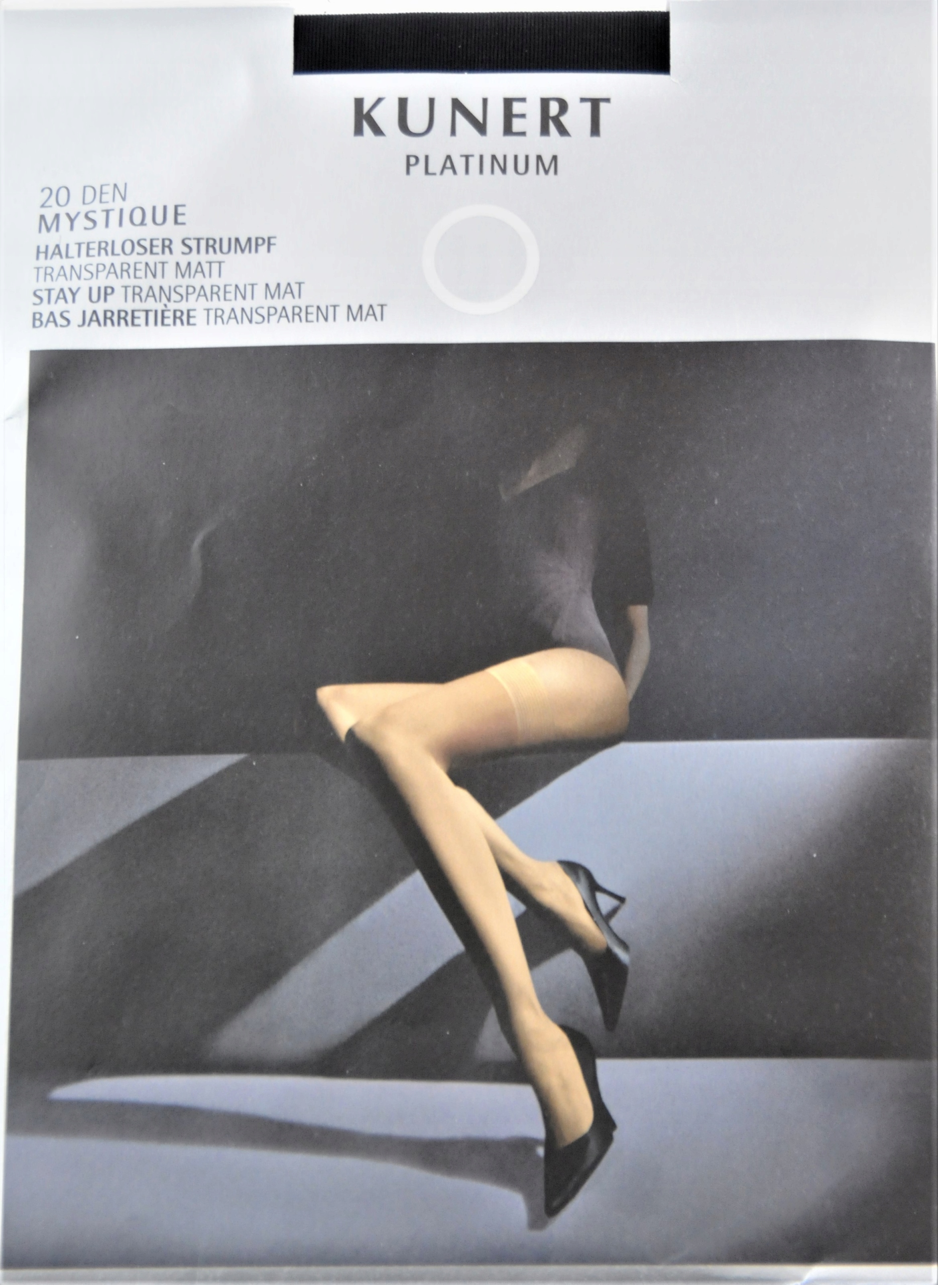 MYSTIQUE 20 Kunerta выглядят просто, шикарно и очень элегантно, а контраст между матовым дном и слегка прозрачной резиной, конечно же, намеренен. Они выглядят так, будто держатся на ноге самостоятельно – без классического кружева.