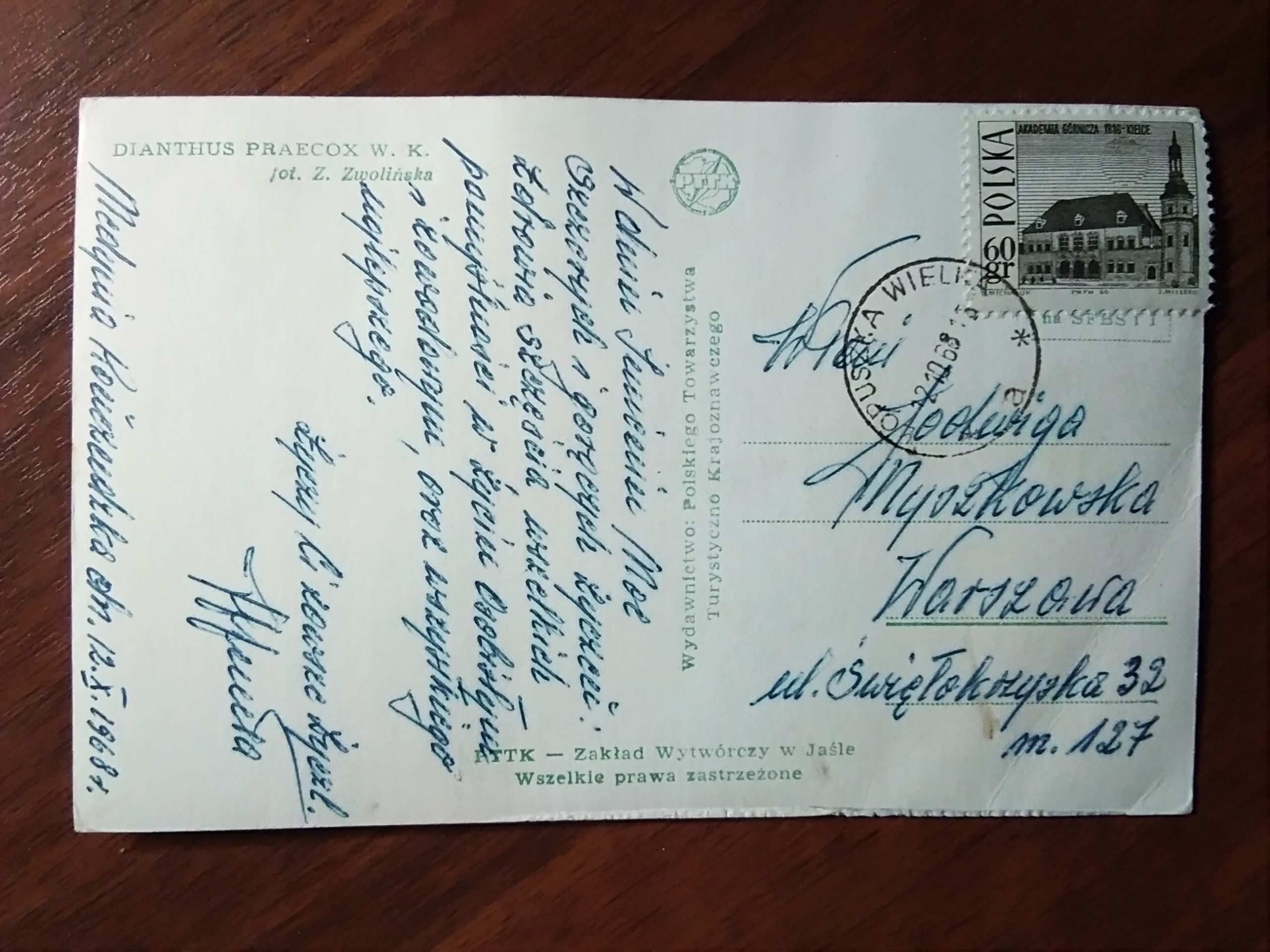 POCZTÓWKA OKOLICZNOŚCIOWA kwiaty goździk 1968 r.