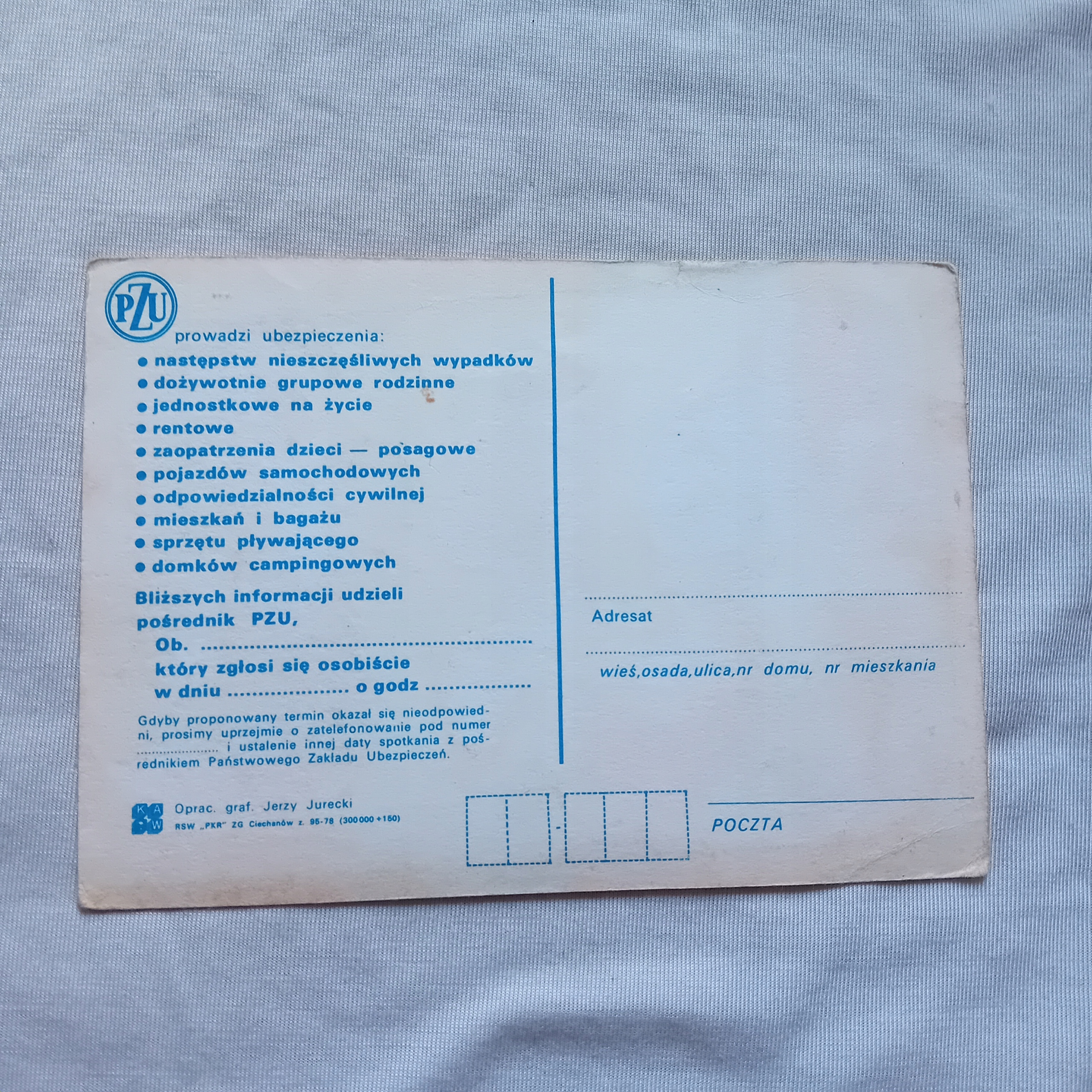 Pocztówka reklamowa - blankiet PZU, Przezorny Zawsze Ubezpieczony, 1978 r.