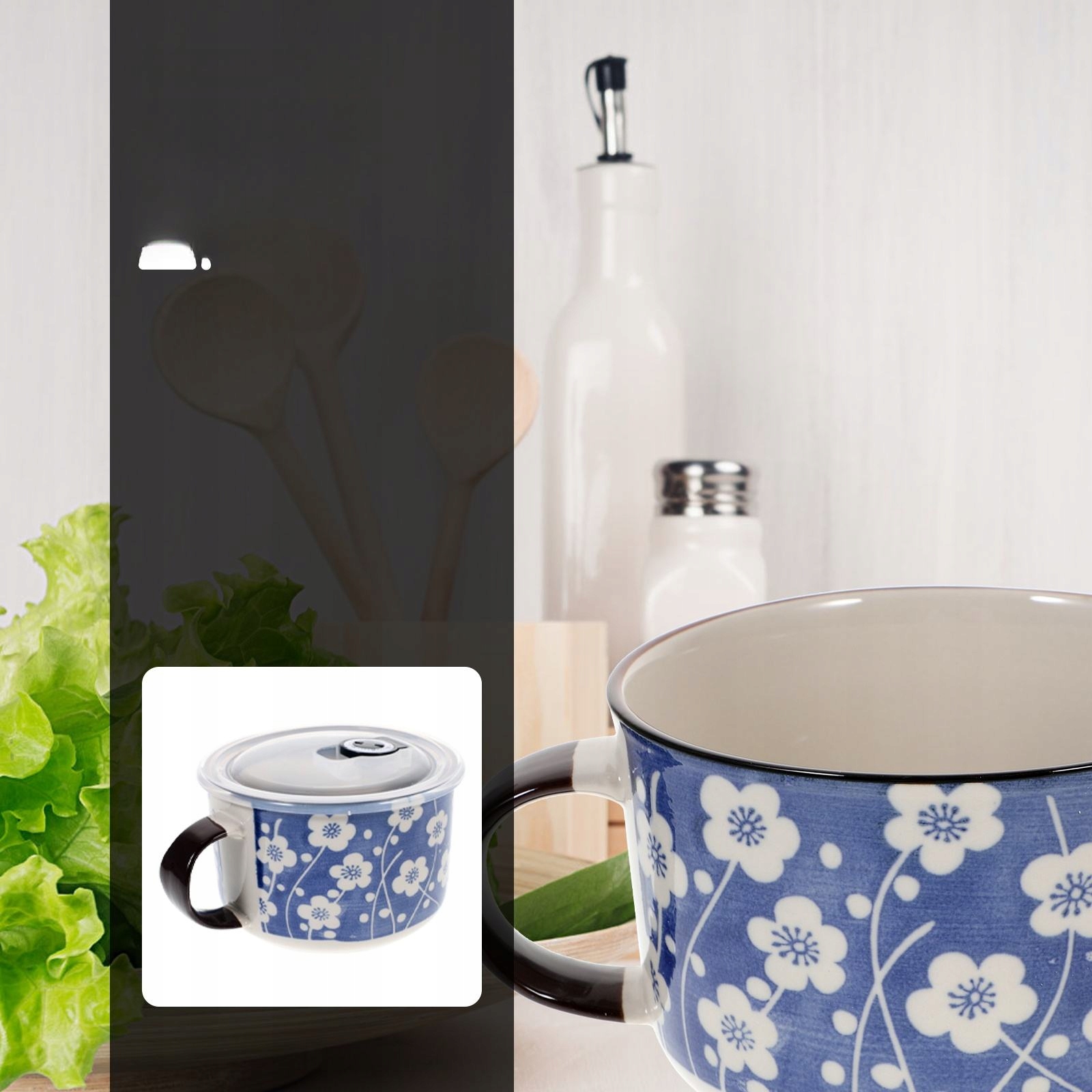 ✅Это сервировочная миска с ручкой и красивым узором. Изготовлен из высококачественного керамического материала, безопасен в использовании и легко чистится. Подходит для лапши рамэн, фруктов, салатов, супов и других блюд. Он очень полезен для здоровья, безопасен и подходит для использования дома или в ресторане.