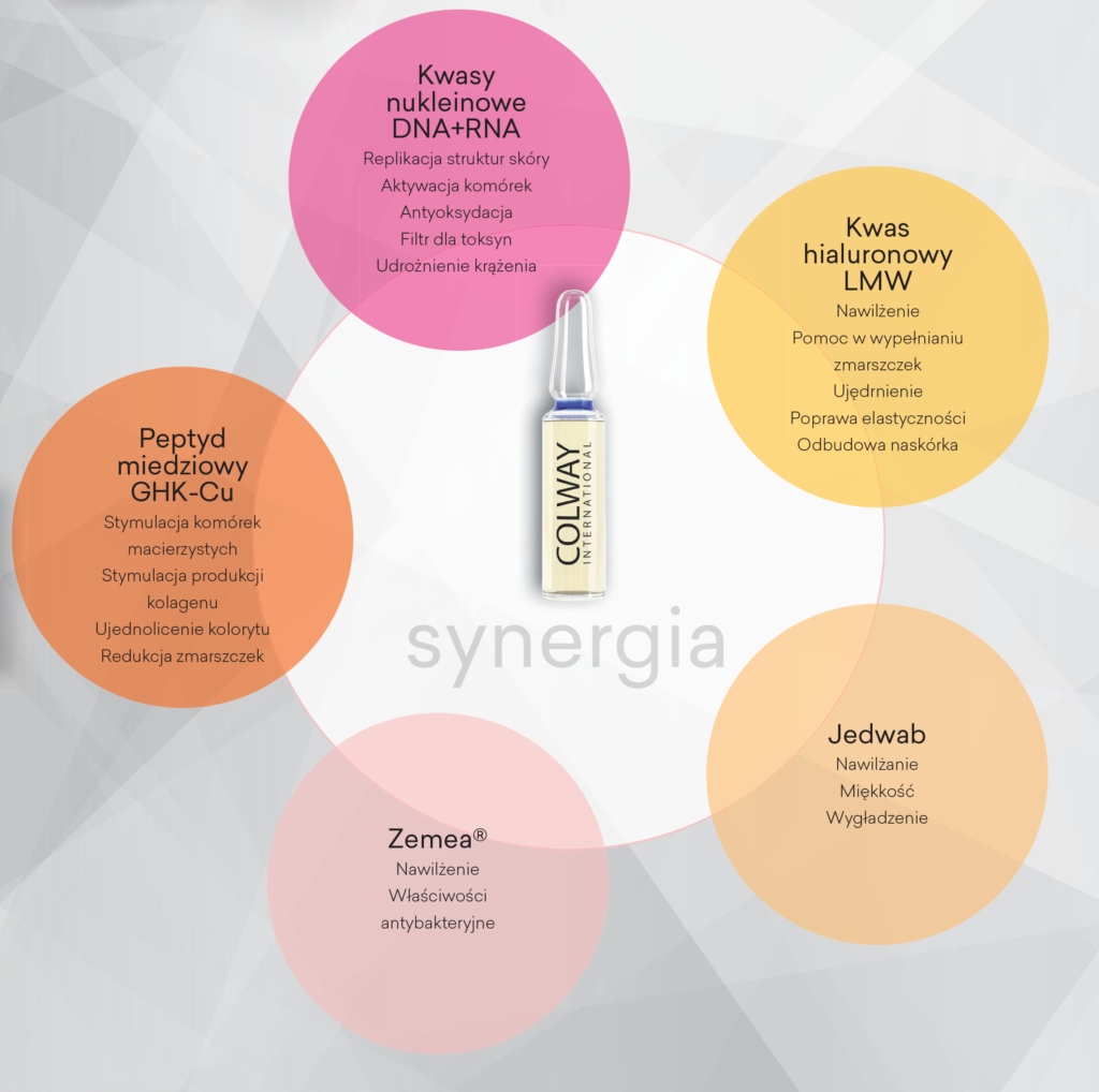 Чтобы обеспечить надежную защиту и восстановление вашей кожи, мы создали роскошный концентрат активных веществ с сильным антивозрастным действием и эффектом уменьшения морщин. Богатый состав ампулы идеально подходит для ухода за сухой, зрелой и уставшей кожей. Высокомолекулярная гиалуроновая кислота создает защитную пленку, ограничивающую трансэпидермальную потерю воды. Натуральный, сертифицированный (Eco Cert) ингредиент Zemea облегчает проникновение других ингредиентов в кожу и обеспечивает длительный увлажняющий эффект. Антивозрастной и разглаживающий морщины эффект также оказывают медный пептид и кислоты ДНК и РНК, делая кожу подтянутой и эластичной.