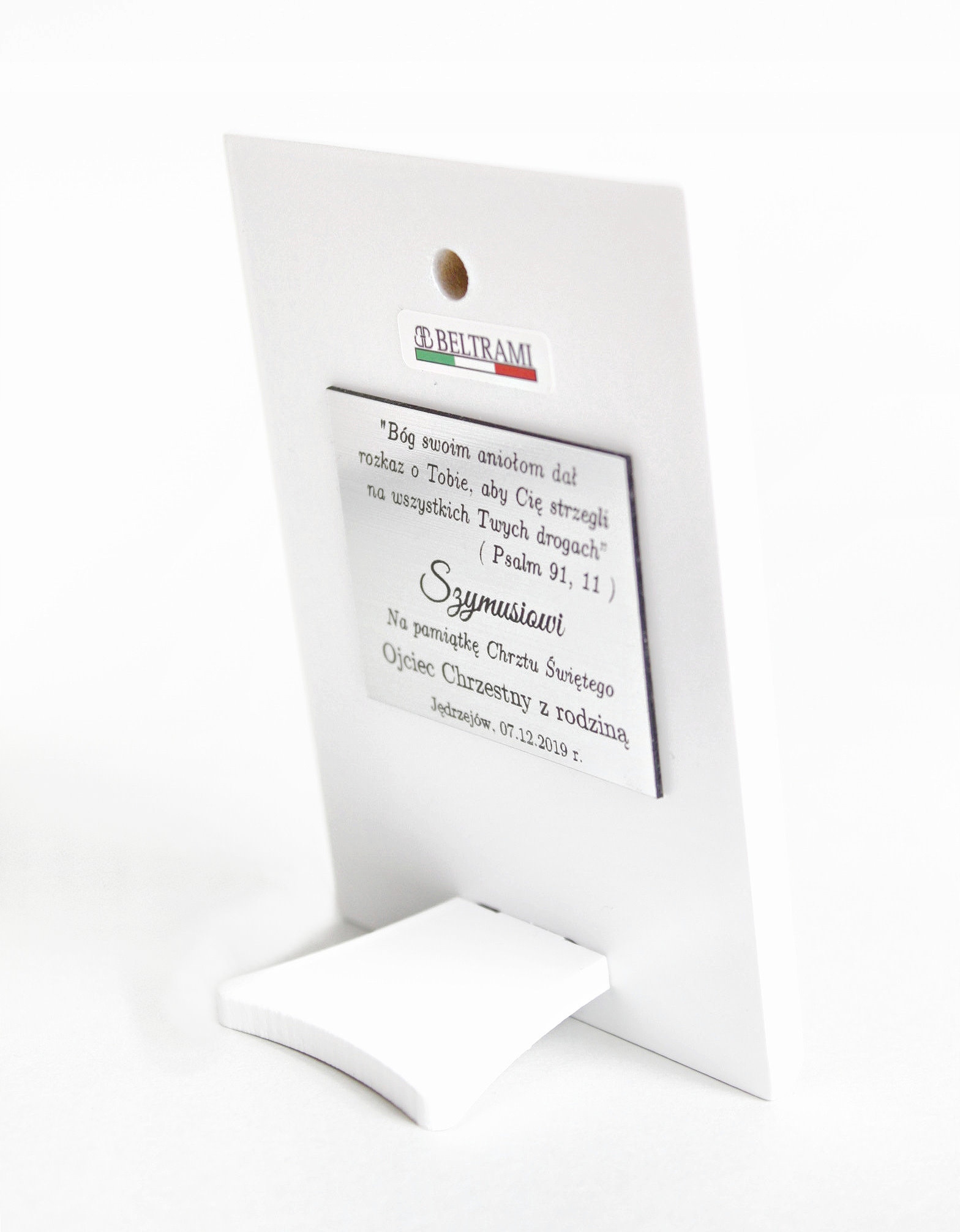 Сувенир от итальянской компании BELTRAMIс изображением Ангела, охраняющего укутанного спящим младенцем б>. Все это было закрыто в форме классического сердца. Благодаря вставленной подставке картину можно разместить на комоде или повесить на стену. Любое посвящение входит в стоимость бесплатно.