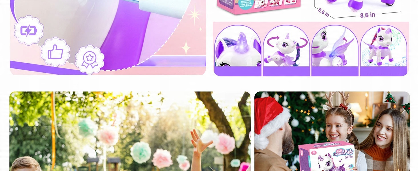 Эта игрушка Unicorn RC отлично подходит для обучения в детском саду и захватывающий рождественский подарок для девочек в возрасте 3, 4, 5 и 6 лет. Благодаря очаровательному дизайну и интерактивным функциям, он стимулирует воображение и способствует образовательному веселью. Независимо от того, является ли это рождественским, подарком на день рождения или просто особенным сюрпризом, эти единороги быстро станут вашим любимым компаньоном.