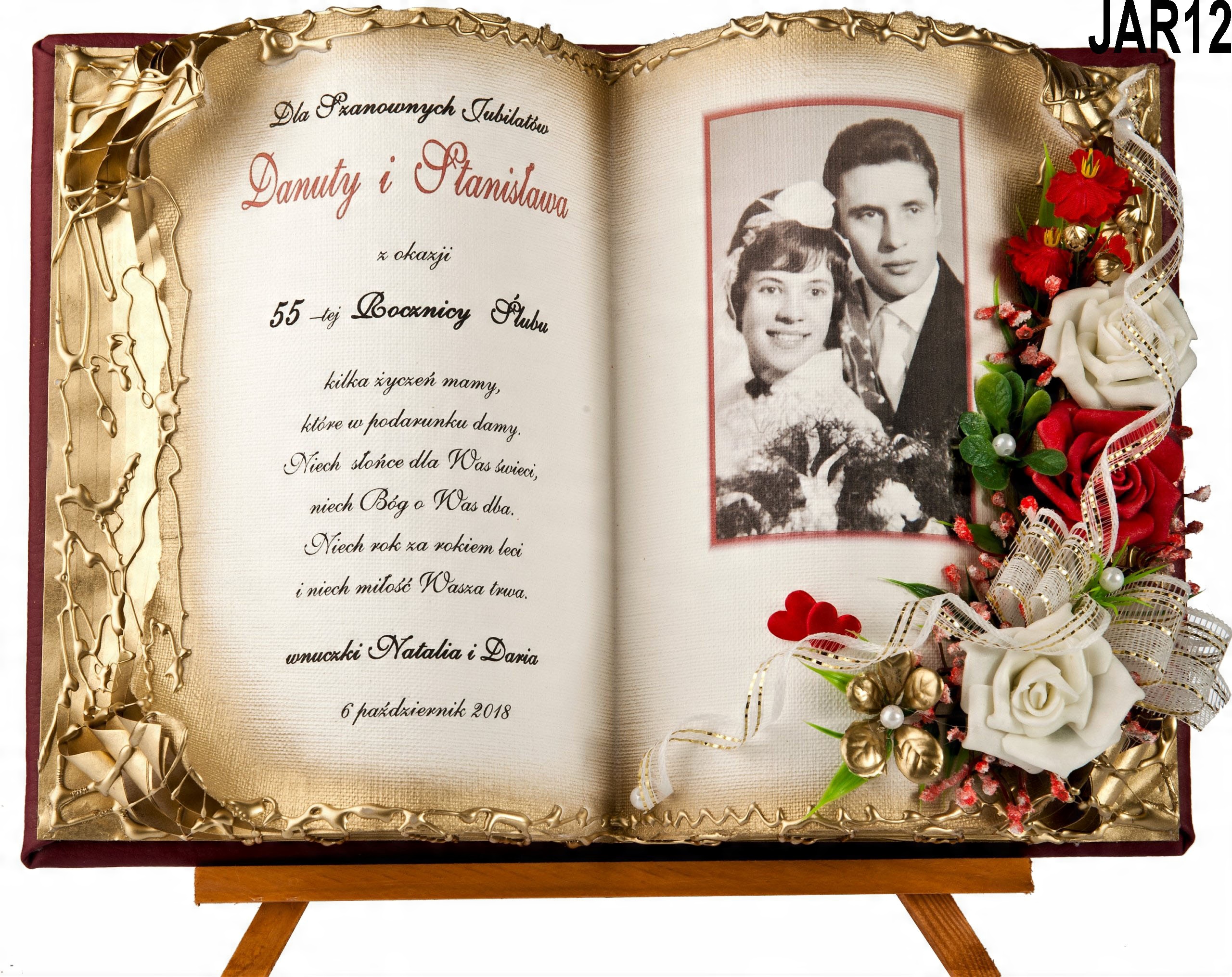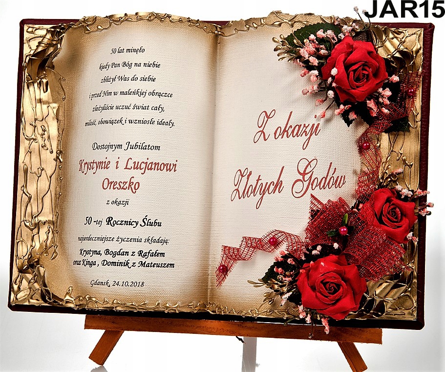 b>мы делаем полностью вручную в технике коллажного оформления пространства - художественная ручная работа, красиво упакованная, на главной странице которой мы размещаем именное текст пожелания по случаюЮбилейной свадьбы - имена именинников, дата, место, если применимо, и в подписи желающие. Всю вещь украшаем красивой объемной композицией из цветов из ткани.