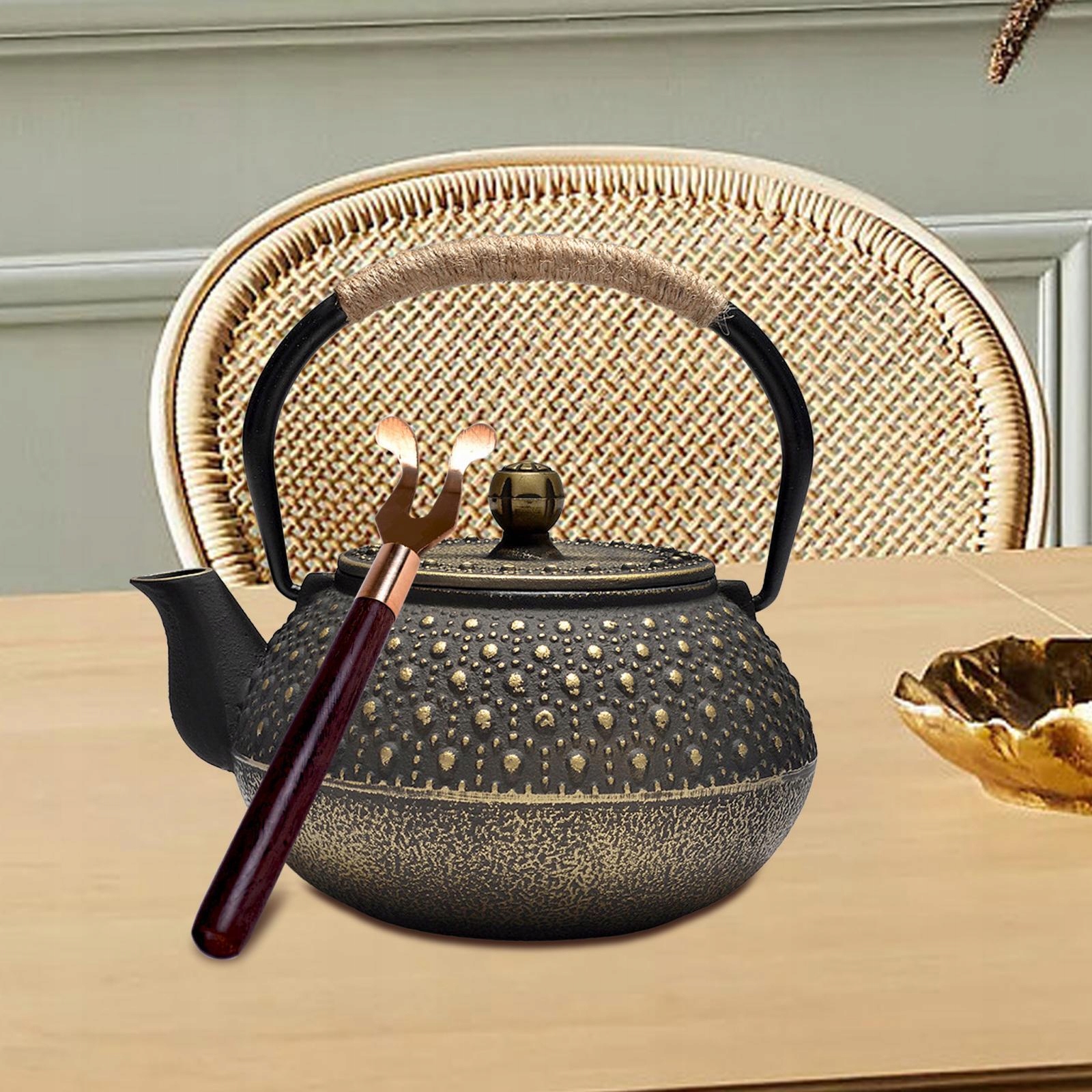 [Материал]: изготовлен из прочного железа, который обеспечивает длительное использование и превосходное удержание тепла. Эргономичный держатель чайника, изысканный дизайн идеально подходит для любителей чая.