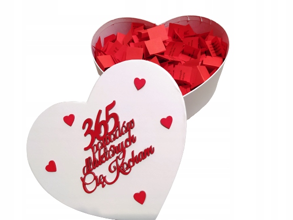Коробка, покрытая деревянными сердечками, с надписью «365 причин, почему я люблю тебя». Внутри 365 сложенных открыток ручной работы. красный, и в каждом из них есть причина или признание. Почему мы любим ЕГО или ЕЕ, ЖЕНУ или МУЖА, ПАРНЯ или ДЕВУШКУ