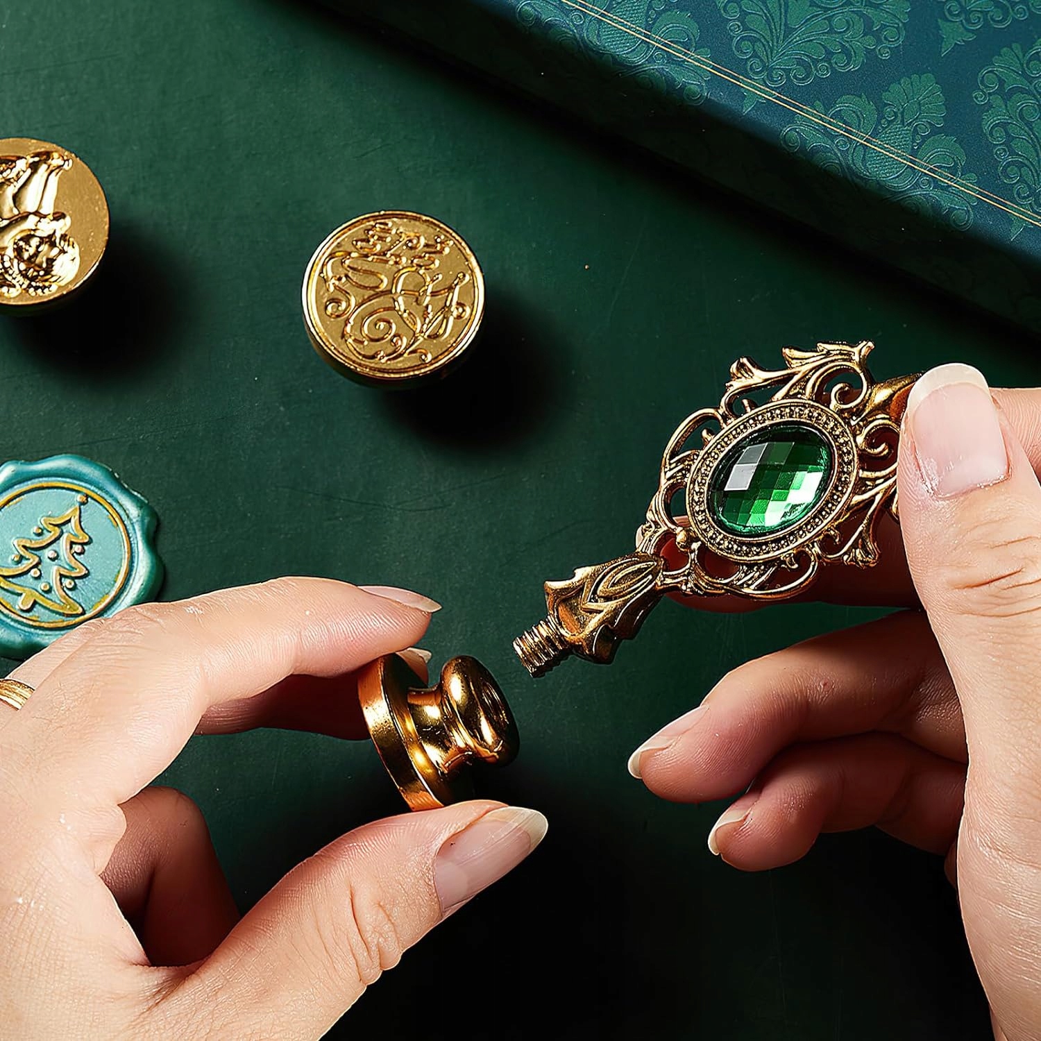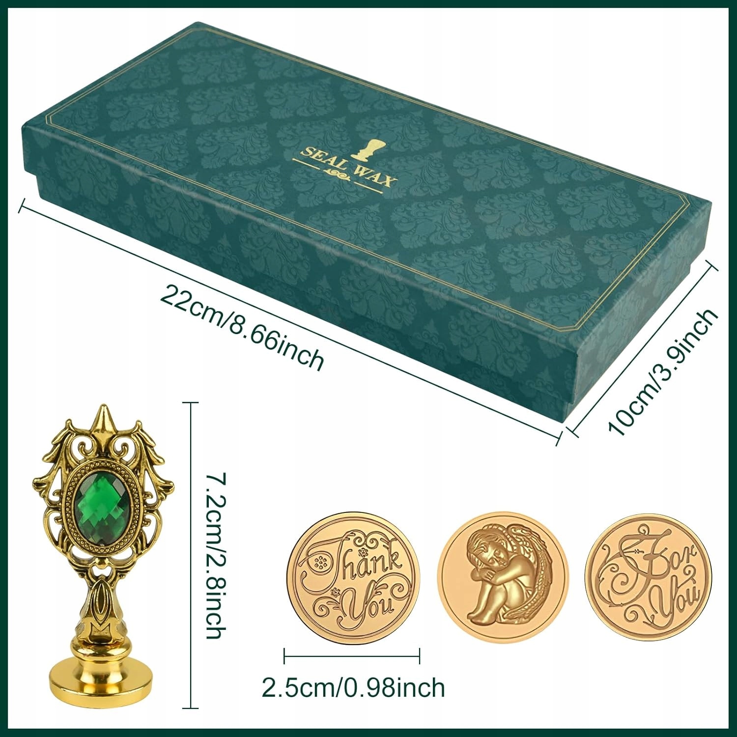 ✅ Элегантная бриллиантовая ручка в древнем золотом и темно -зеленом цвете. Запечатывающая головка изготовлена из держателя цинк сплава и латунной головки, с прозрачным рисунком, который можно легко изменить и установить. p>