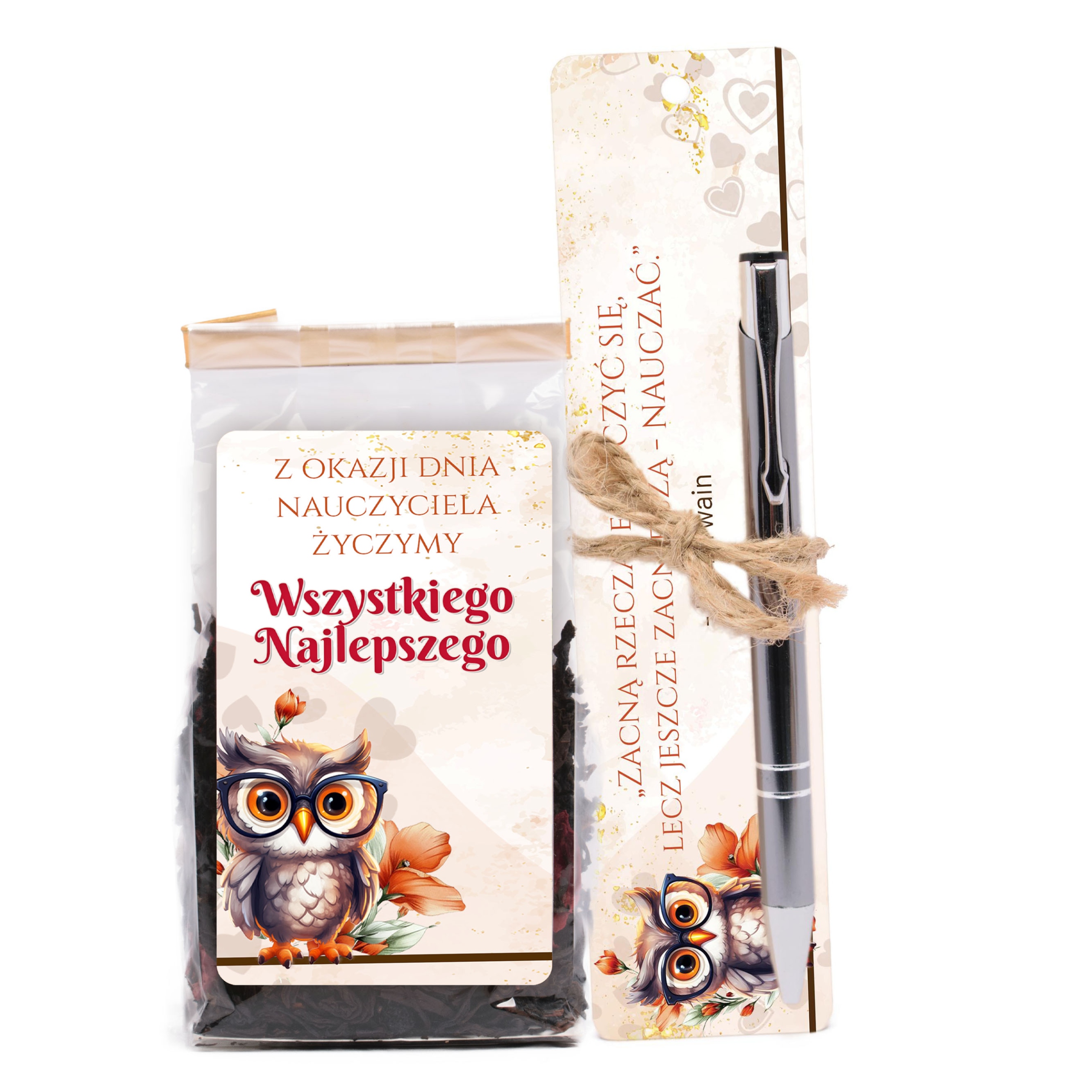ПОДАРОК НА ДЕНЬ УЧИТЕЛЯ Чай и закладка с ручкой, набор с совой