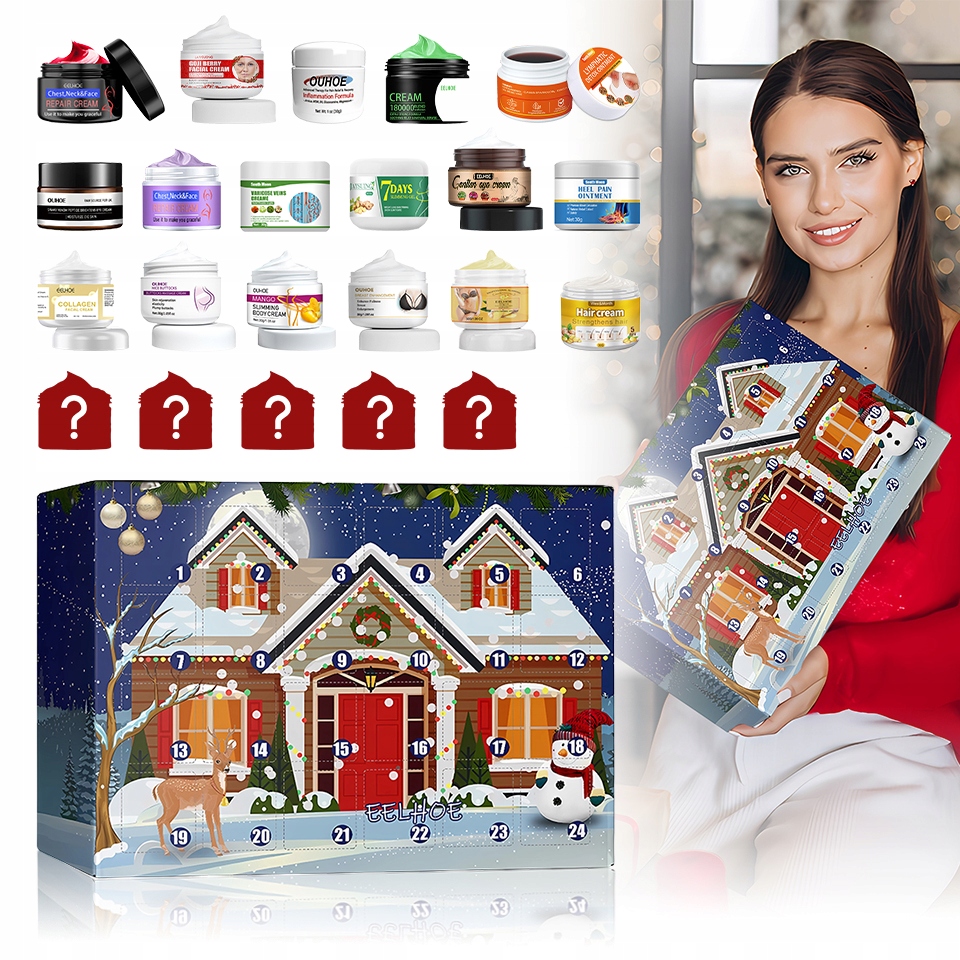 Рождественская подарочная коробка | Рождественский адвент-календарь | Рождественская коробочка с сюрпризом | 24 крема для лица с сюрпризом | Идеальный рождественский подарок для вашей семьи