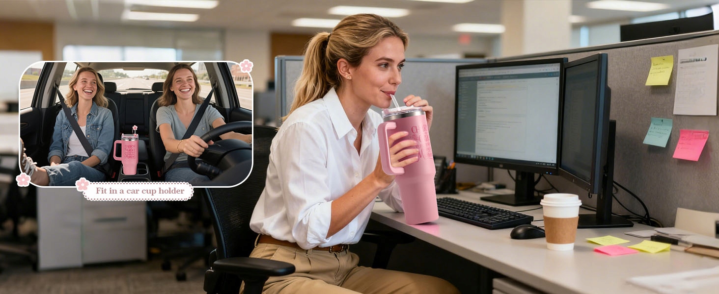 ✅ 40 унций ИЗОЛИРОВАННЫЙ СТАКАН С РУЧКОЙ И СОЛОМОЙ
