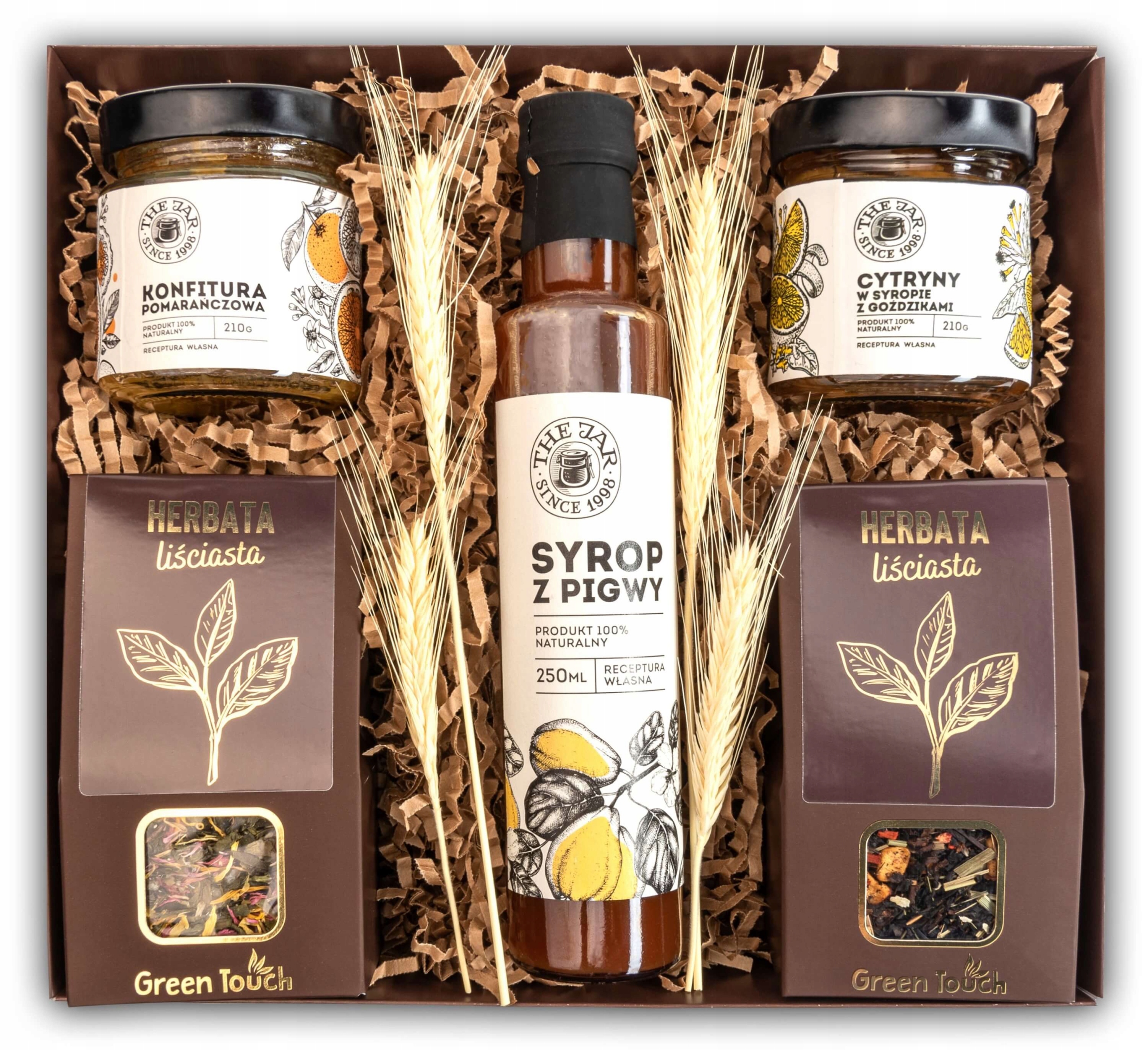 Это идеальный подарок для любителей чая и сладостей! В подарочной упаковке Green Touch собраны уникальные фруктовые чаи, ароматное апельсиновое варенье, лимоны в сиропе с гвоздикой и сироп из айвы. Все красиво упаковано, готово к отправке. Кроме того, украшения из сушеных стеблей зерна дополняют элегантный внешний вид подарка.