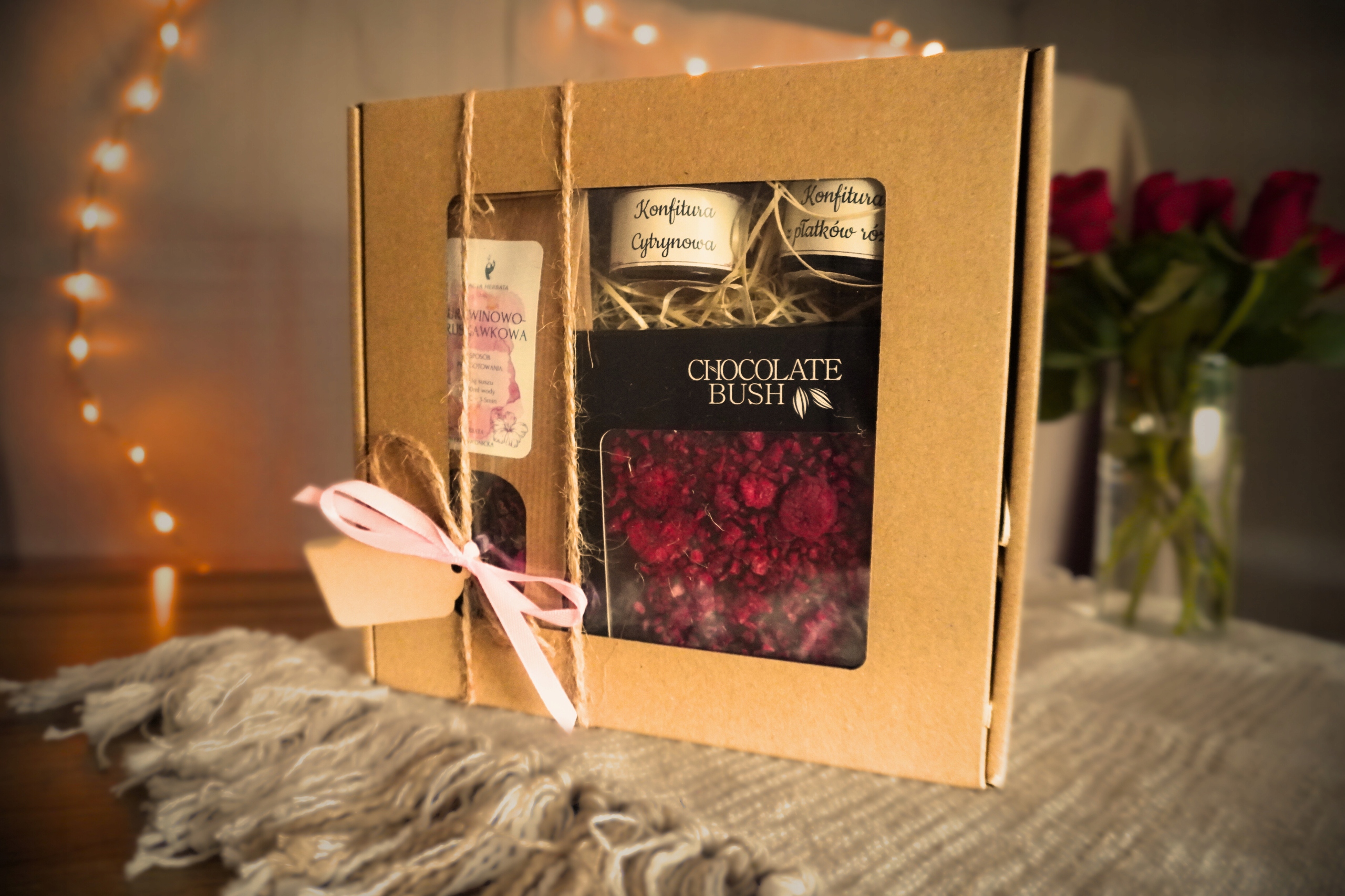 ✅ В подарочной корзине есть чай, сладкое шоколадное сердечко, варенье и мёд, благодаря чему у вас есть возможность