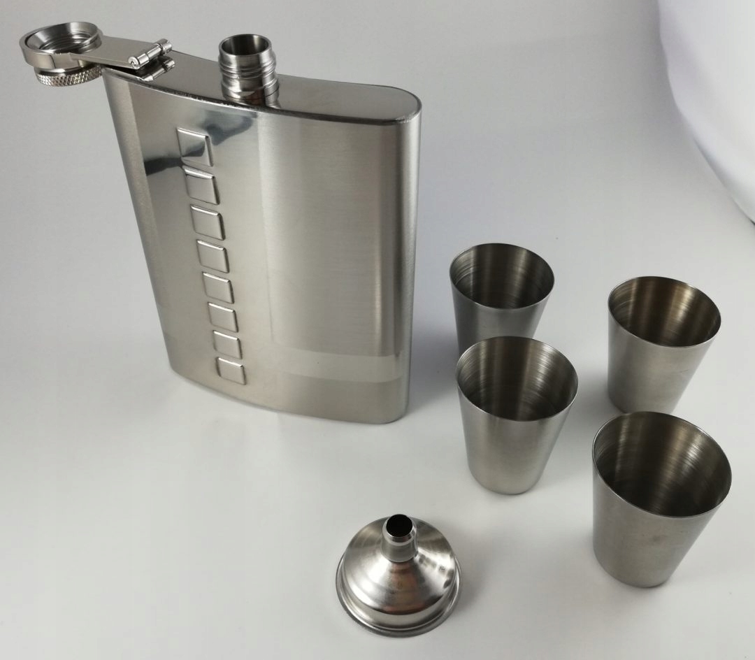 Предложение распространяется на набор из 4 стаканов, воронки и фляжки. Все это в элегантной деревянной коробочке с красивой подкладкой. Идеально подходит для подарка. Набор практичен и доставит много радости. Емкость колбы составляет 240 мл, а емкость каждого стакана — 30 мл.