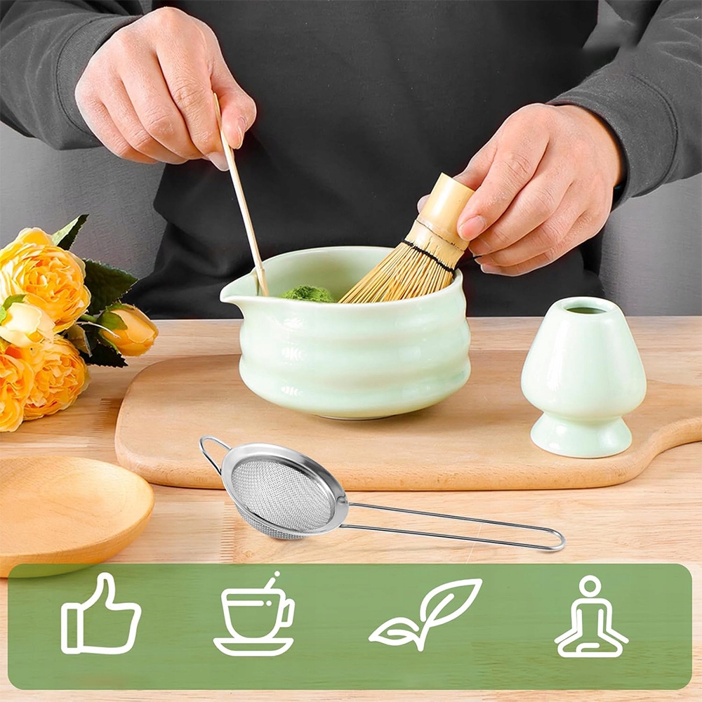 Набор для пивоварения Matcha: Венчик, миска с носиком, ситом, керамический венчик, ложка, японский чайный порошок - инструмент для начинающих, подходящий для подарков на церемониях (зеленый, 9 штук)