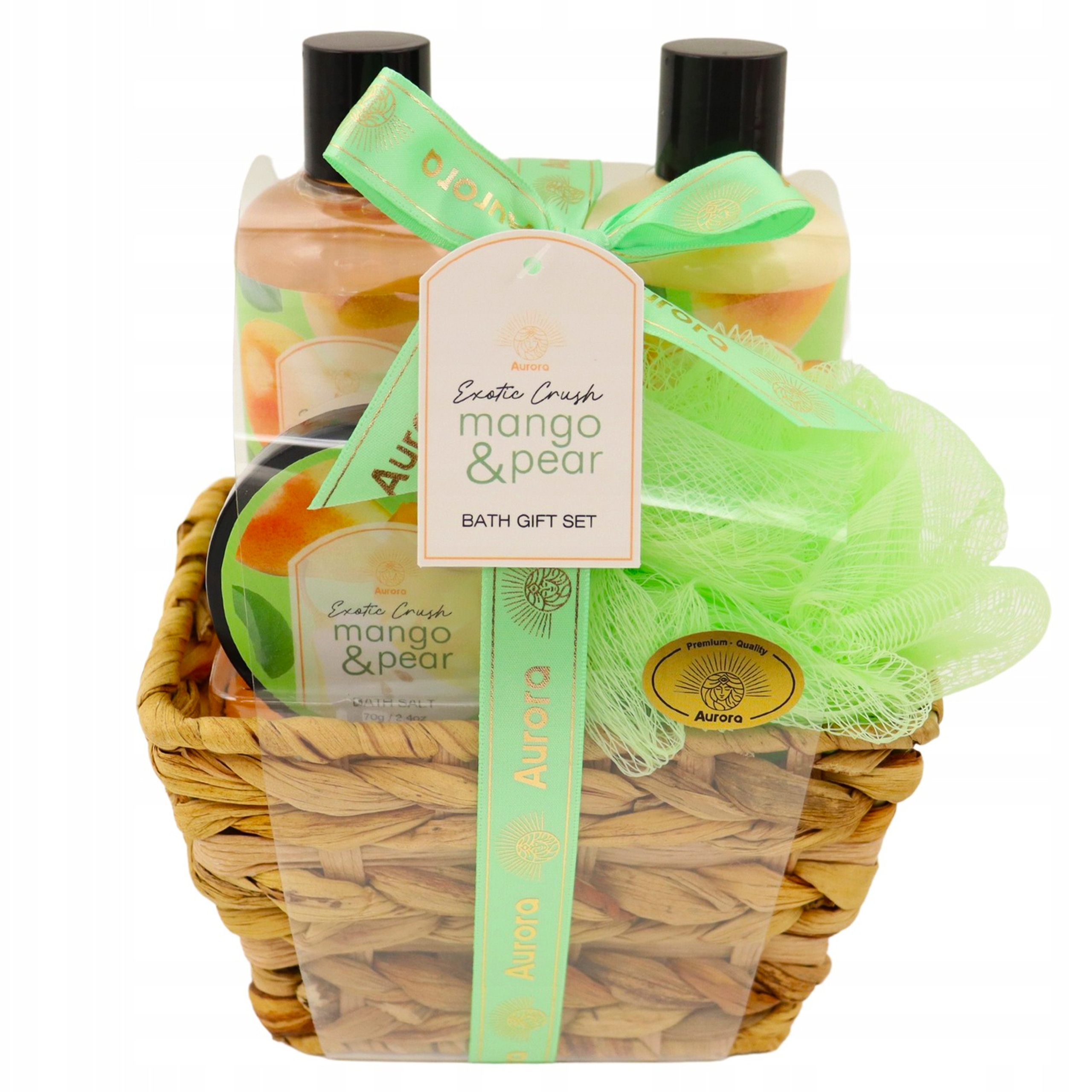 Подарочный набор «Аврора» — «Груша и манго» (4 элемента) — идеальный подарок для людей, которые хотят насладиться расслабляющими и фруктовыми ощущениями во время ежедневного ухода за телом.