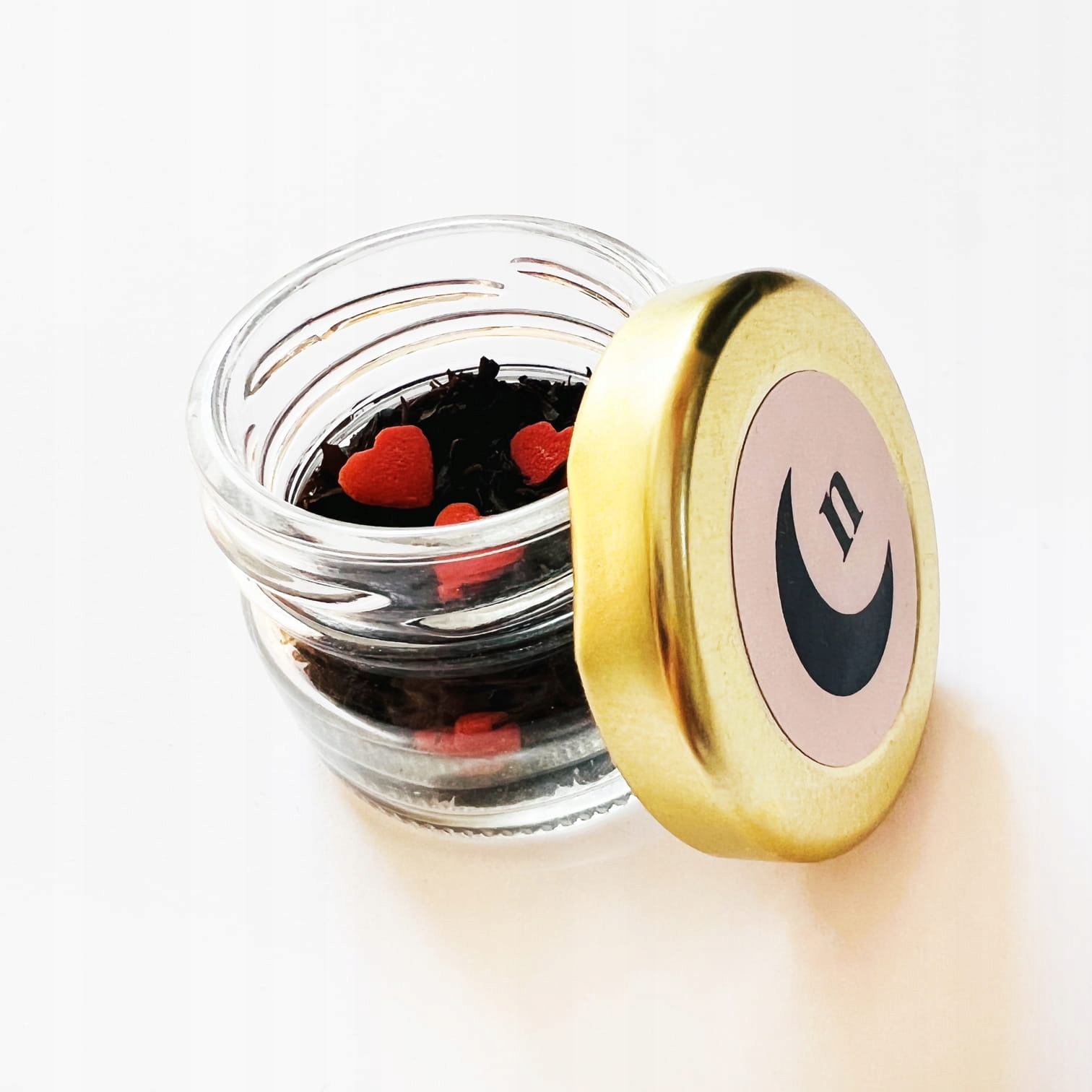 Мини-баночка содержит около 10 г черного цейлонского чая с добавлением сахарных сердечек, которые растворяются в горячей воде, подслащивая ее. Содержимого банки хватит на одну чашку чая.