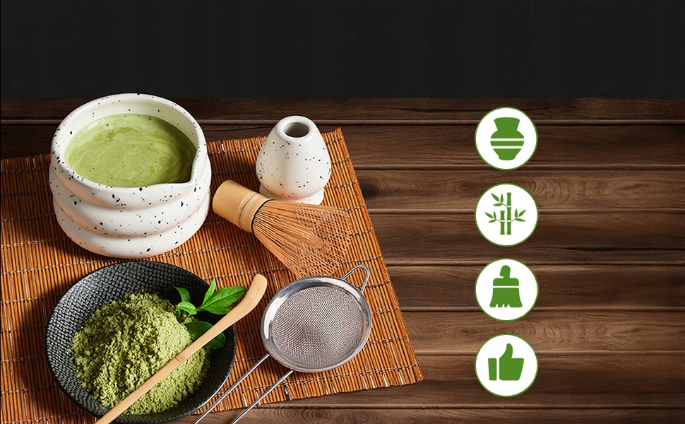 - ☑️- Благодаря этим аксессуарам заваривать матча становится легко и удобно. Всего за несколько шагов вы сможете насладиться чашкой ароматного и насыщенного матча.