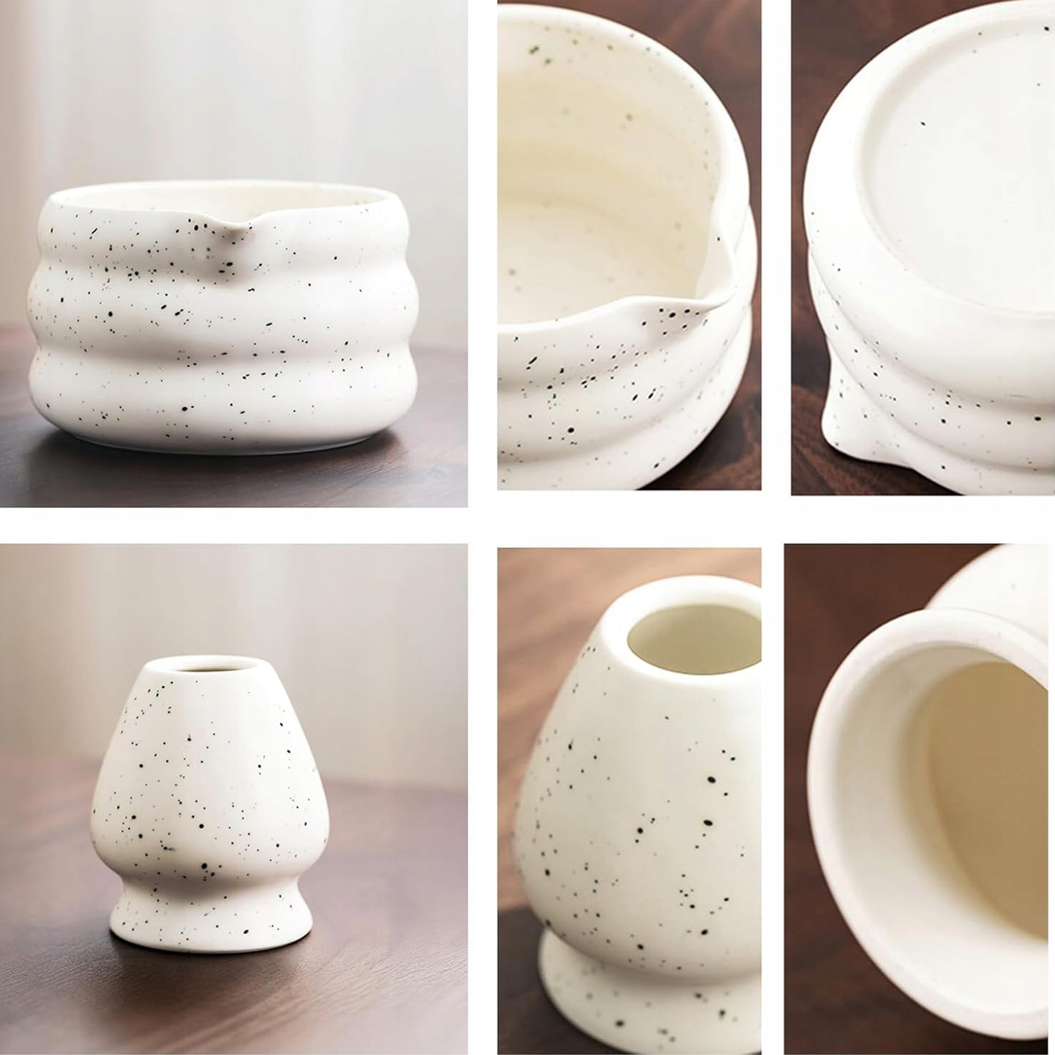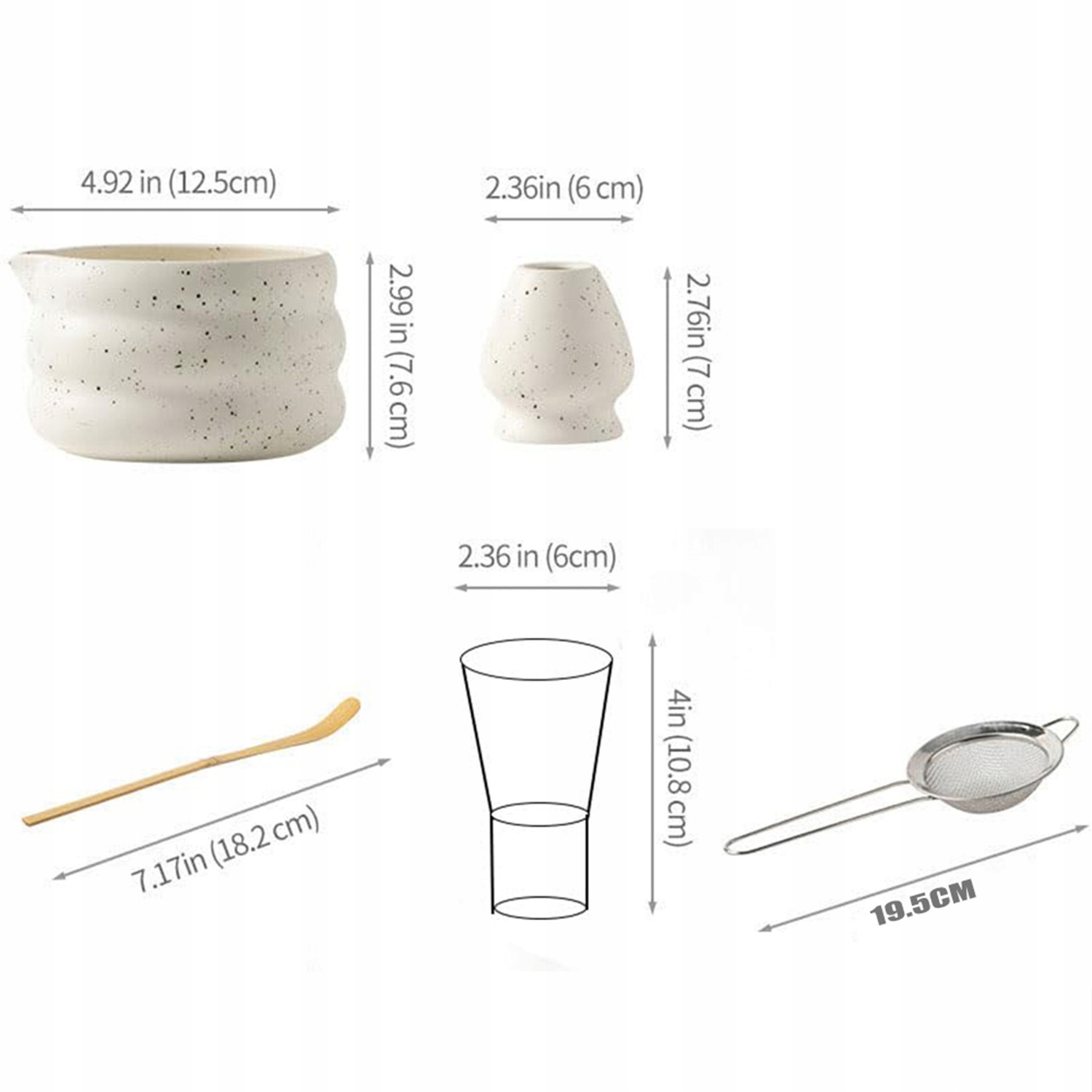 - ☑️- В набор входит все необходимое для традиционного заваривания матча: миска, бамбуковый венчик, ситечко, подставка и ложка.