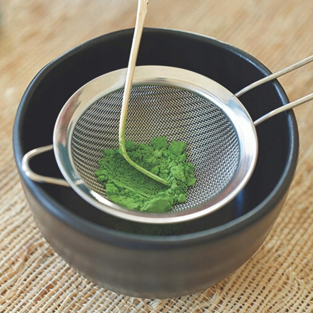 💚 Siete to Matcha имеет очень маленькую сетку, которая эффективно фильтрует комки и разглаживает порошок. Его также можно использовать с ложкой, чтобы сломать комки, аккуратно нажимая.
