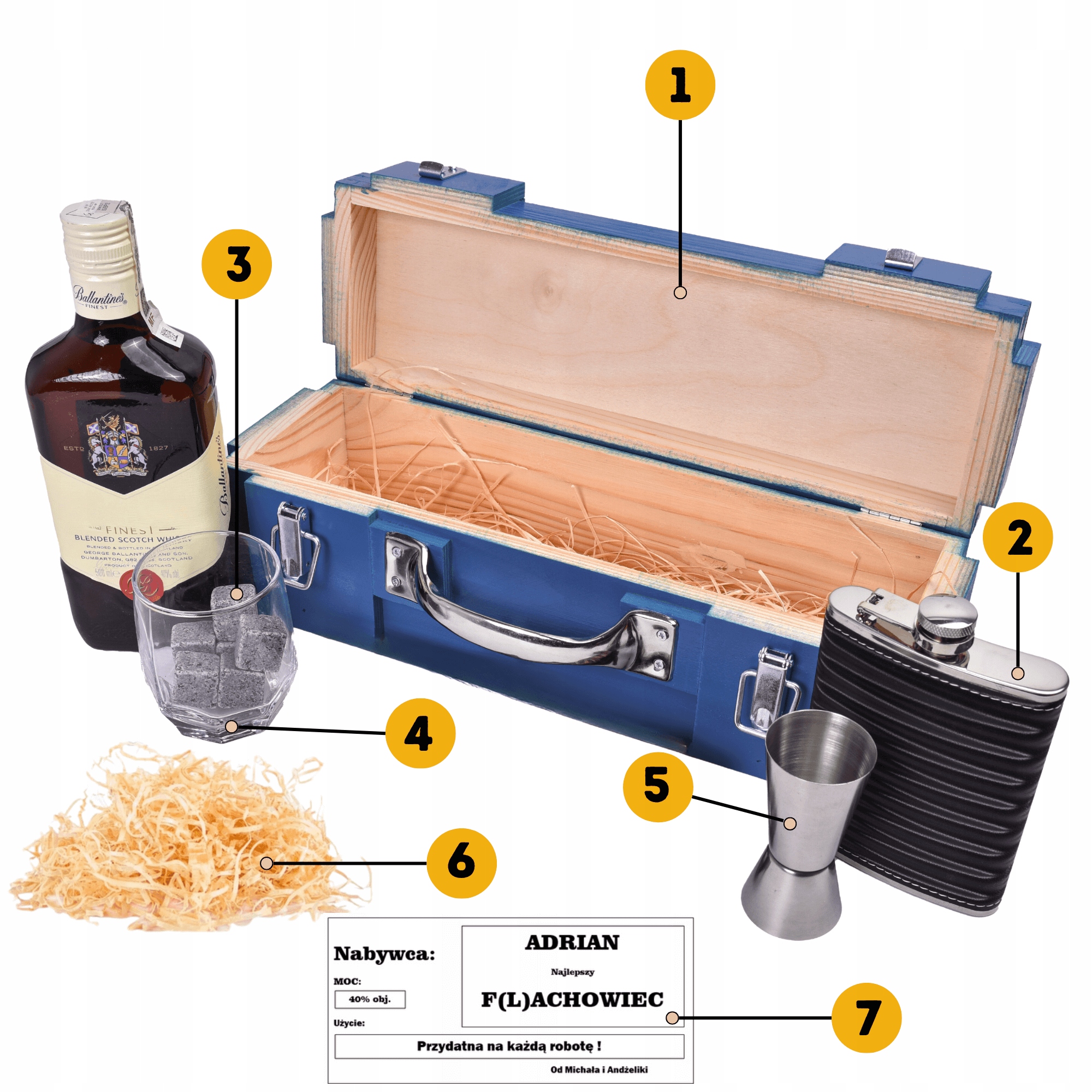 Коробка, которая идеально подходит к бутылке Balantines 0,5 л, вместит все аксессуары: