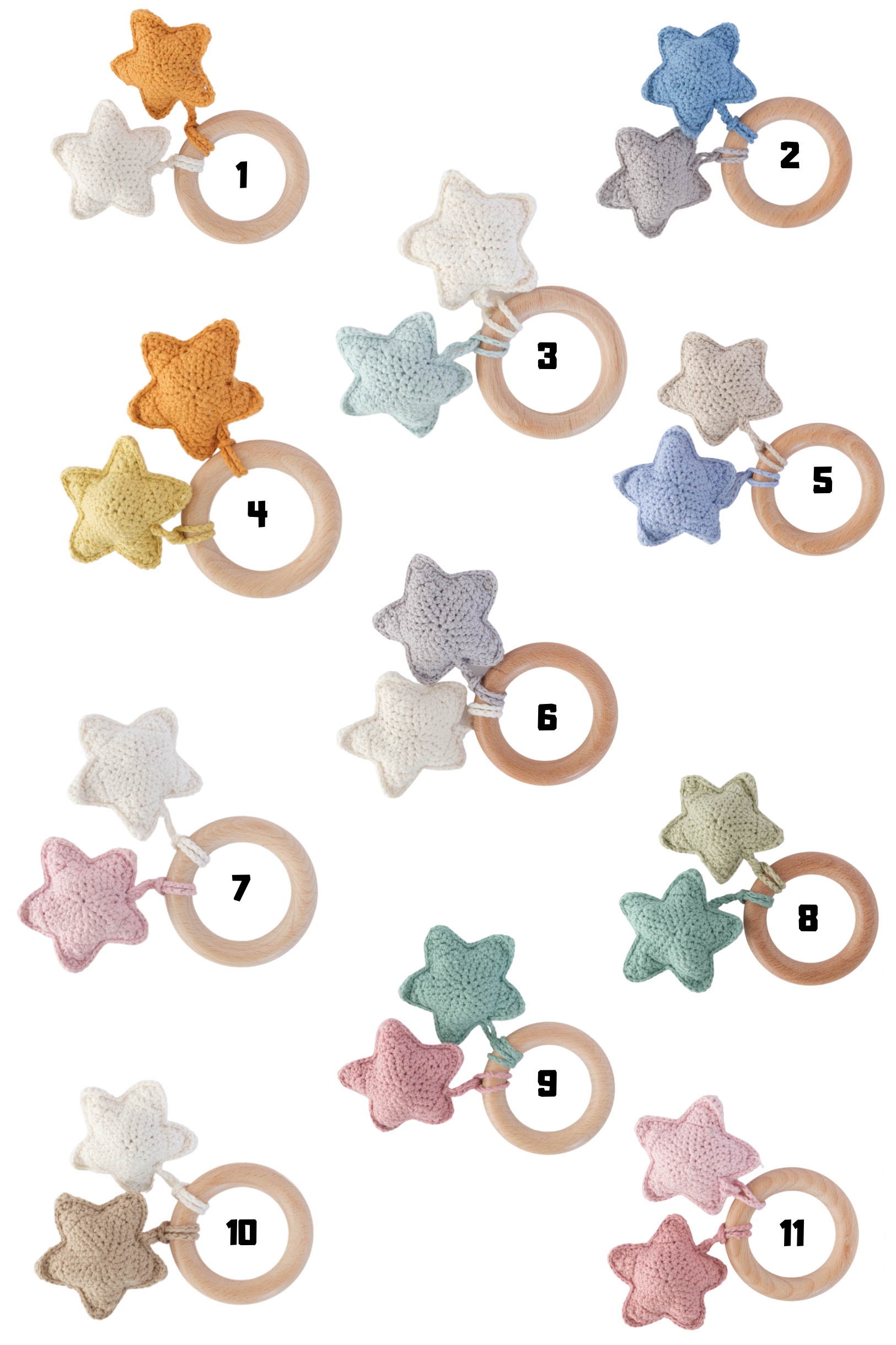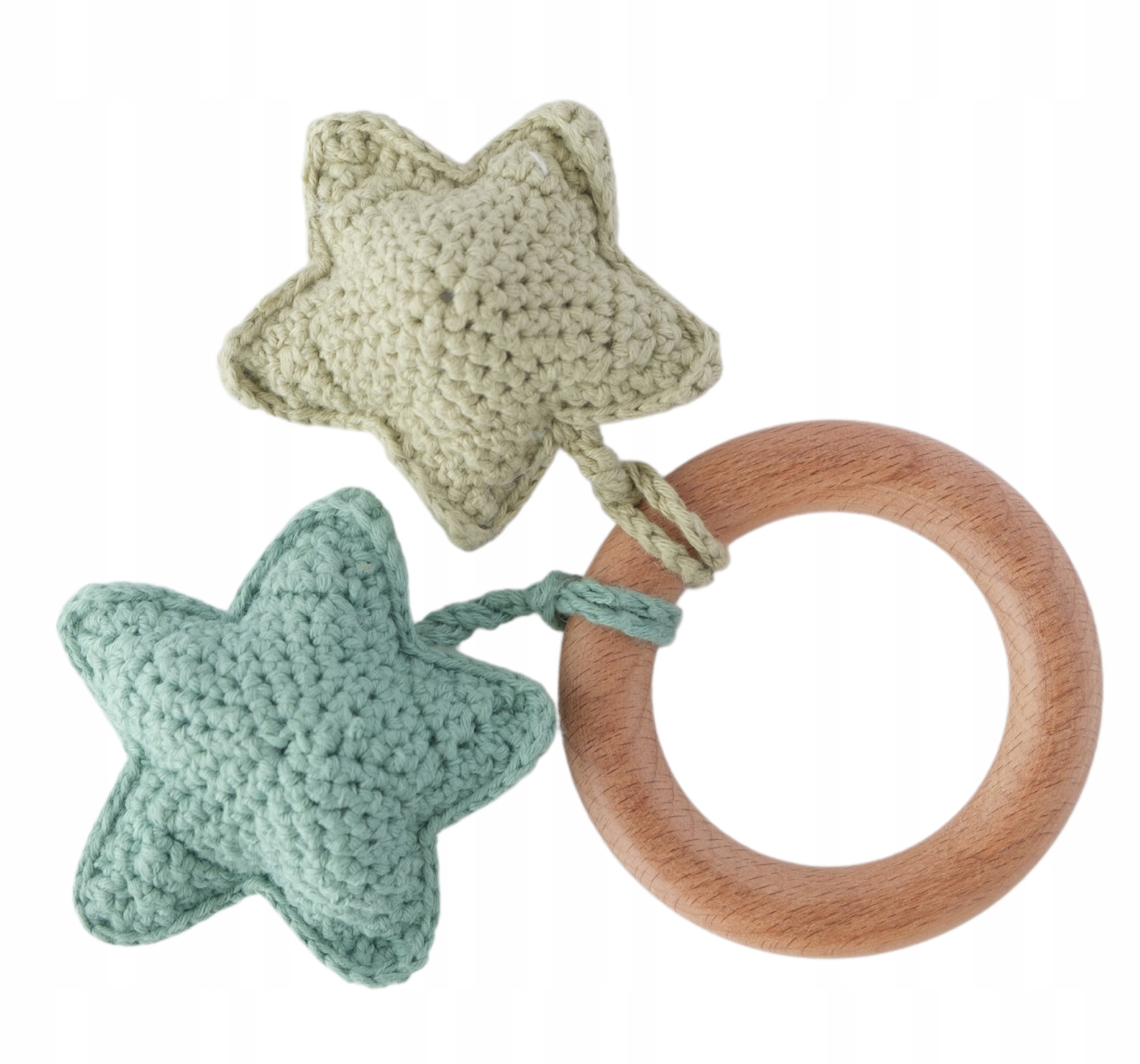 Изготовлена вручную из натуральных, сертифицированных материалов, не содержащих вредных веществ. Пряжа 100% хлопок, дерево бук, наполнитель звездочка - противоаллергенный силиконовый шарик.
