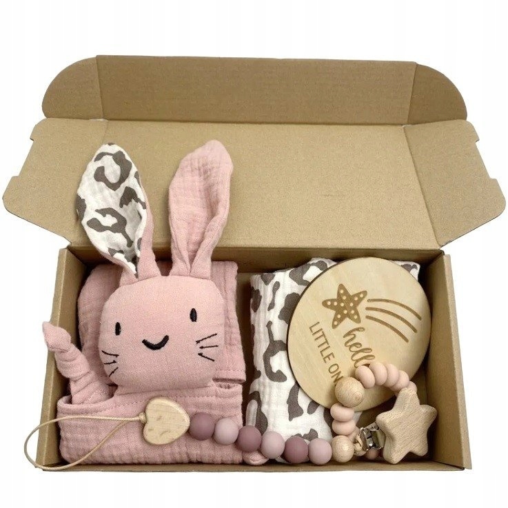 Набор аксессуаров для новорожденного ребенка в картонной упаковке идеально подходит для подарка.