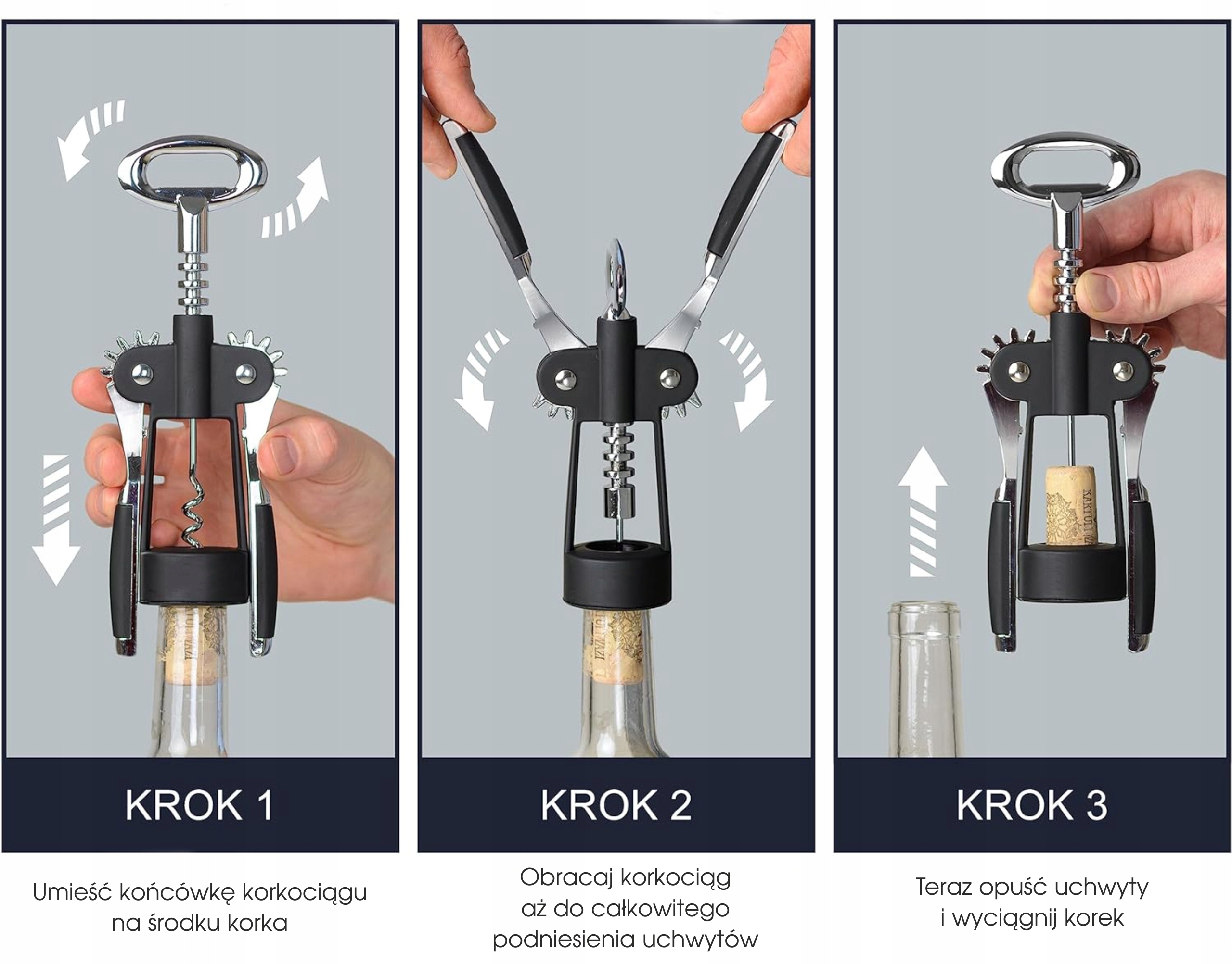 Шаг2️⃣ Вращайте штопор до тех пор, пока ручки не поднимутся полностью