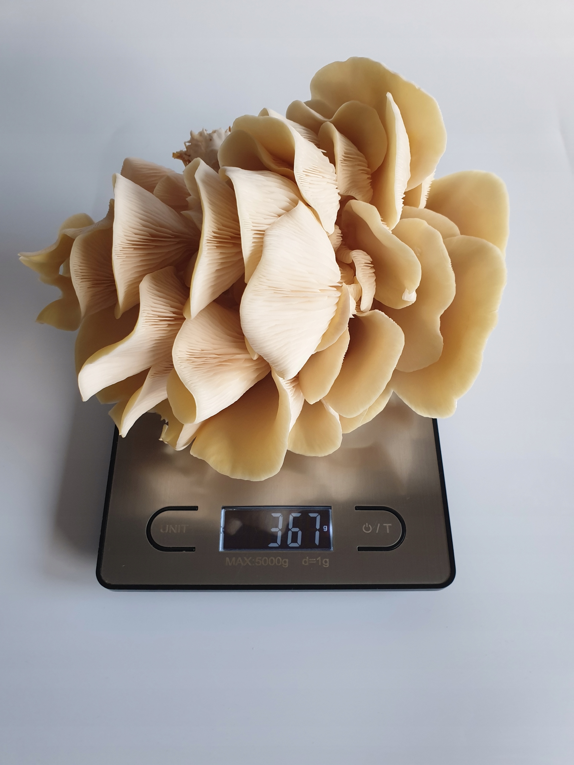 Чтобы получить лучшие культуры, рекомендуется выращивать грибы устриц, как только они получают их в отправке. Из этого набора вы можете получить 1 - 3 броска грибов (в зависимости от условий выращивания), из которых первый взгляд гарантирован и составляет около 200 г - 500 г. Последующие броски могут составлять около 20% - 50% от предыдущего броска.