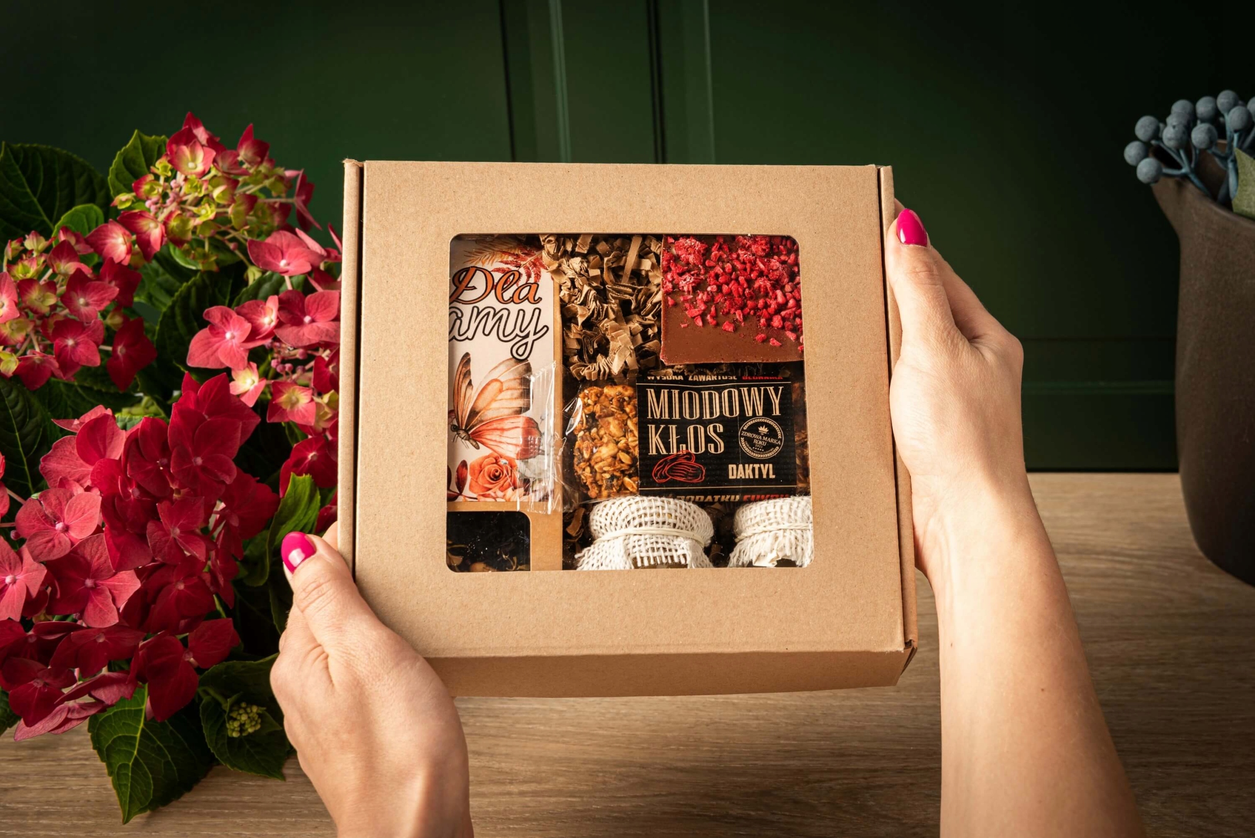 - Подарочная коробка с окошком, перевязанная декоративная лента Green Touch