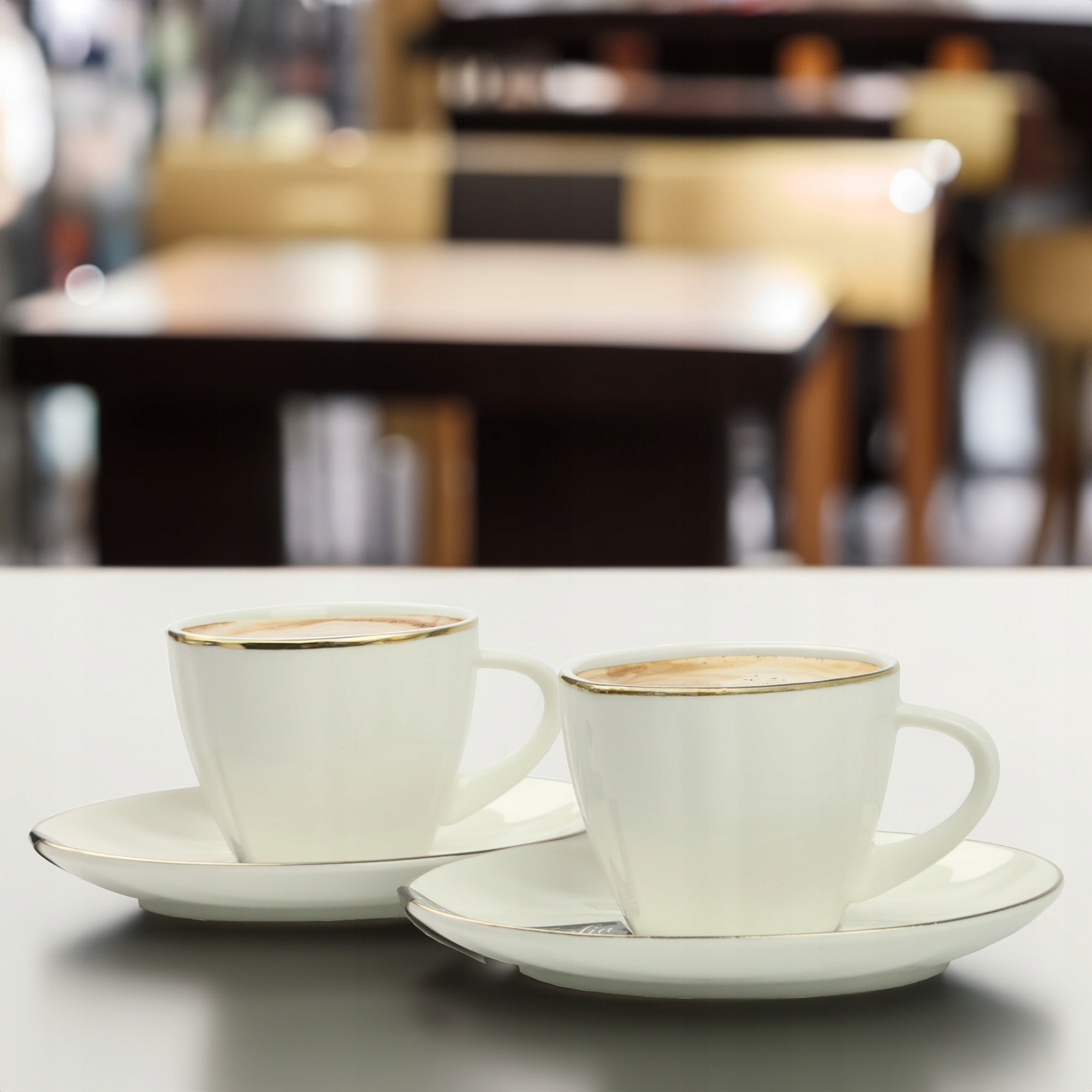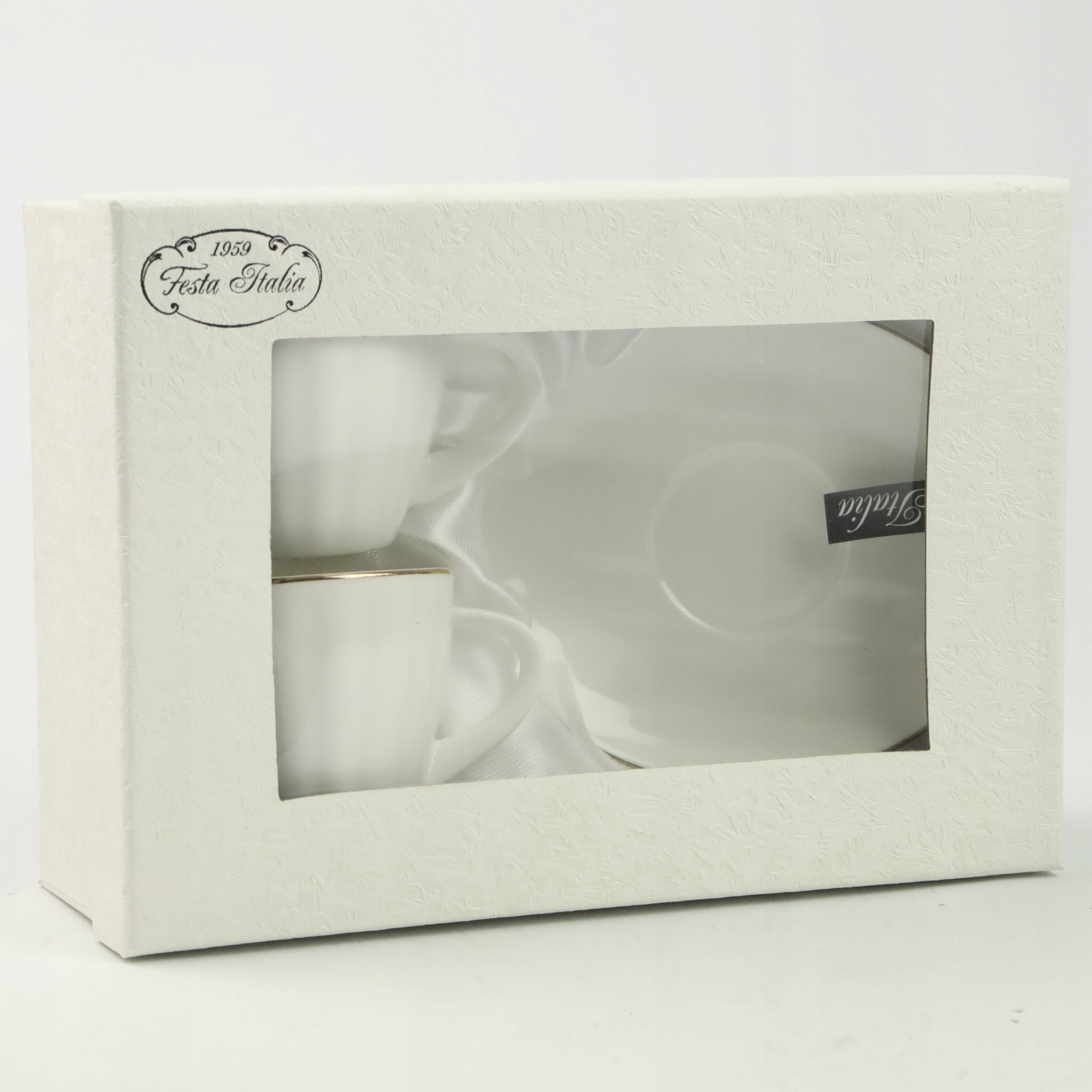 В этот элегантный набор входят две кофейные чашки емкостью 100 мл каждая и блюдца. Сервиз изготовлен из фарфора высочайшего качества. Украшение в виде волнистых борозд на чашке и блюдце – идеальное сочетание современности и традиций.