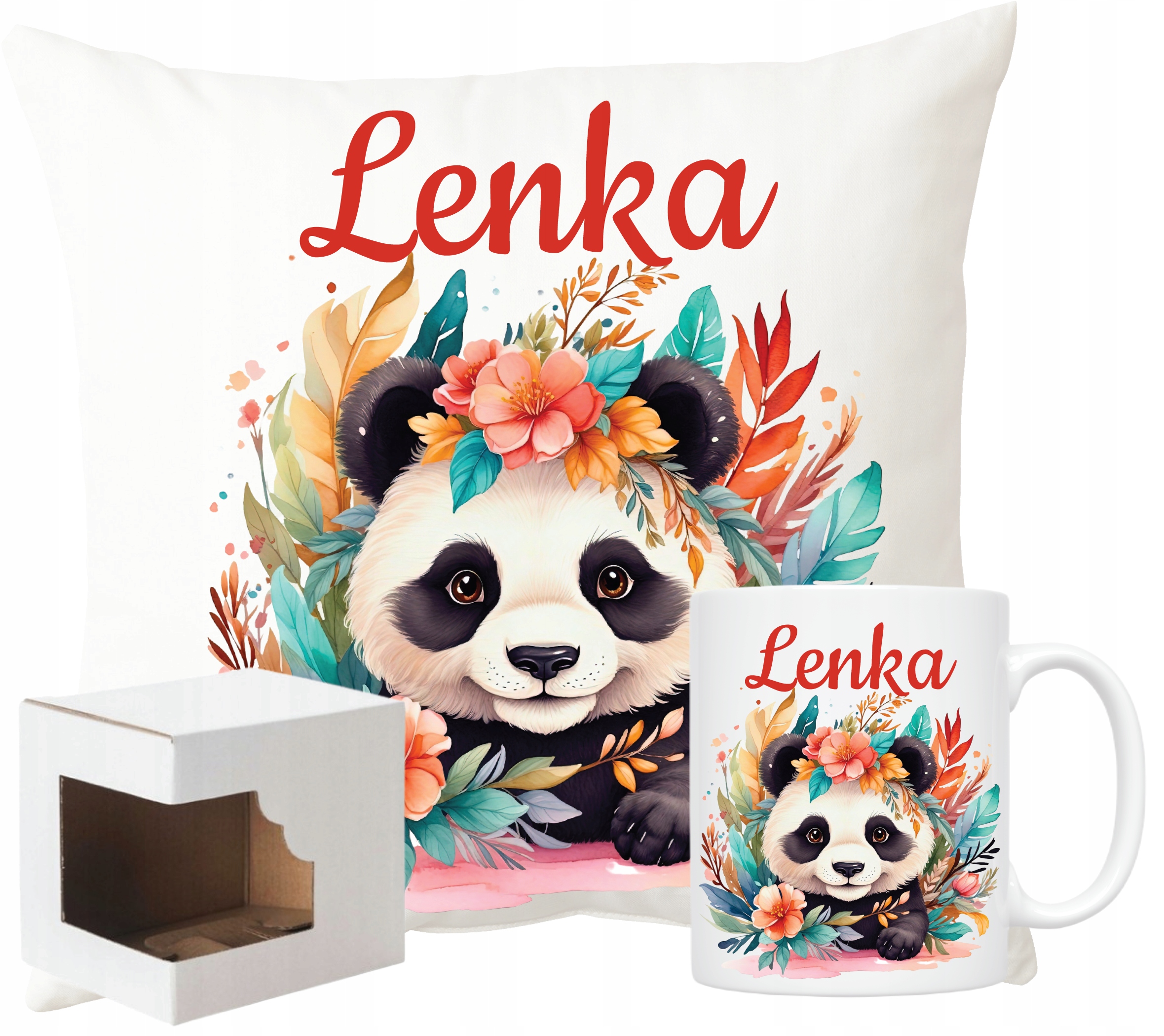 КРУЖКА + разноцветная ПОДУШКА ПАНДА + ИМЯ