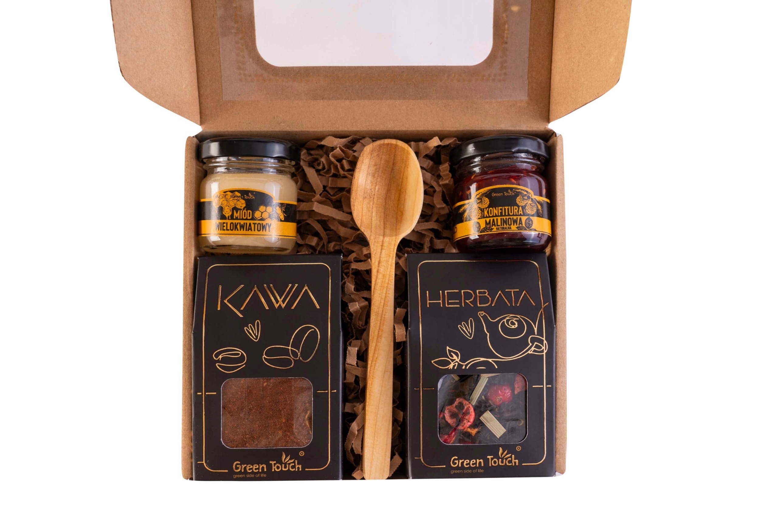 ПОДАРУНКОВИЙ НАБІР КОРОБОК З ЧАЄМ І КАВОЮ, чорне золото, ЛОЖКА ДЖЕМУ ДЛЯ МЕДУ