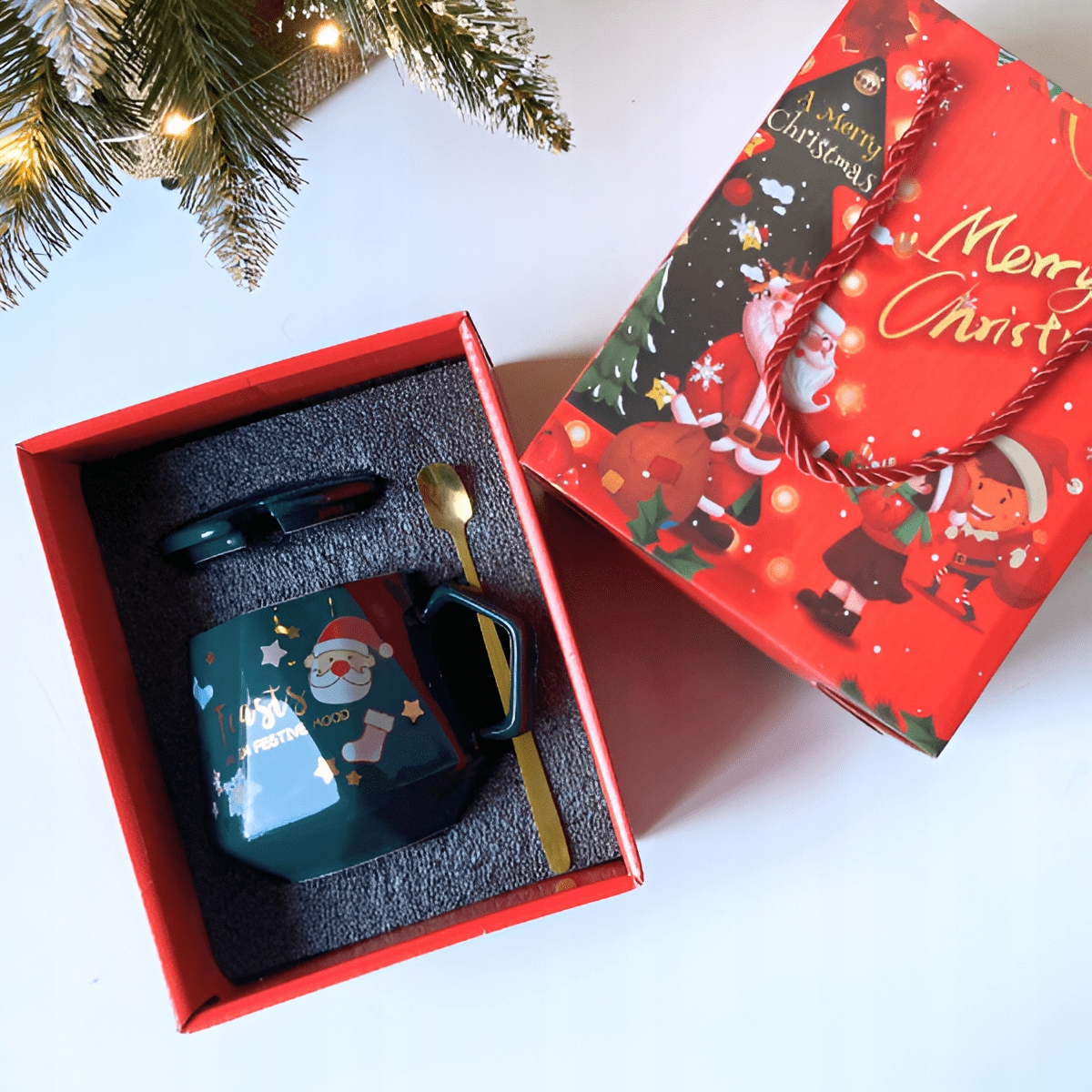 ПОДАРОЧНЫЙ НАБОР НА РОЖДЕСТВЕНСКИЙ НИКОЛАЙ ПОДАРОЧНАЯ КРУЖКА В КОРОБКЕ С ЛОЖКОЙ