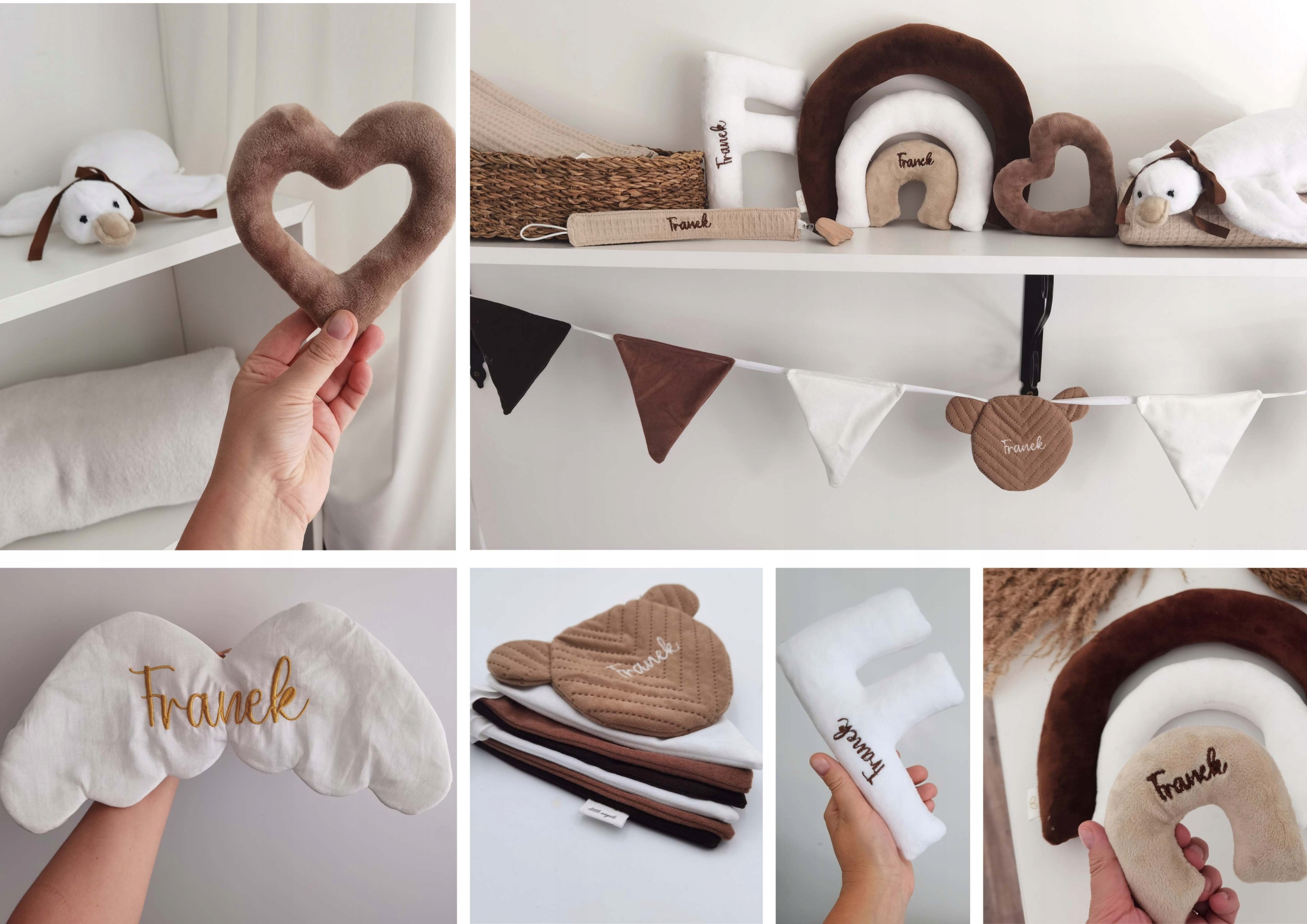 На всех элементах можно разместить любую короткую надпись, например. имя ребенка выбранным шрифтом и цветом.